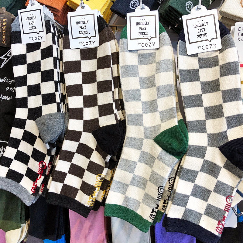 한국 양말 복고풍 영국 스타일 체스 판 남자 면 양말 동대문 스마일 편지 중간 튜브 남성 양말 유행스토어 가기