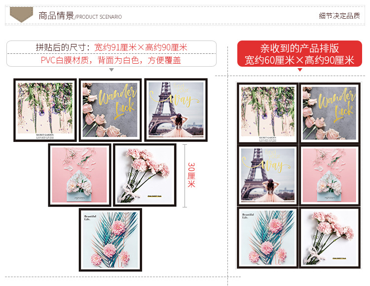 소녀 하트 핑크 장미 스티커 기숙사 파리 타워 아름다운 벽지 임대 장식 벽 스티커 ZDB-2259스토어 가기
