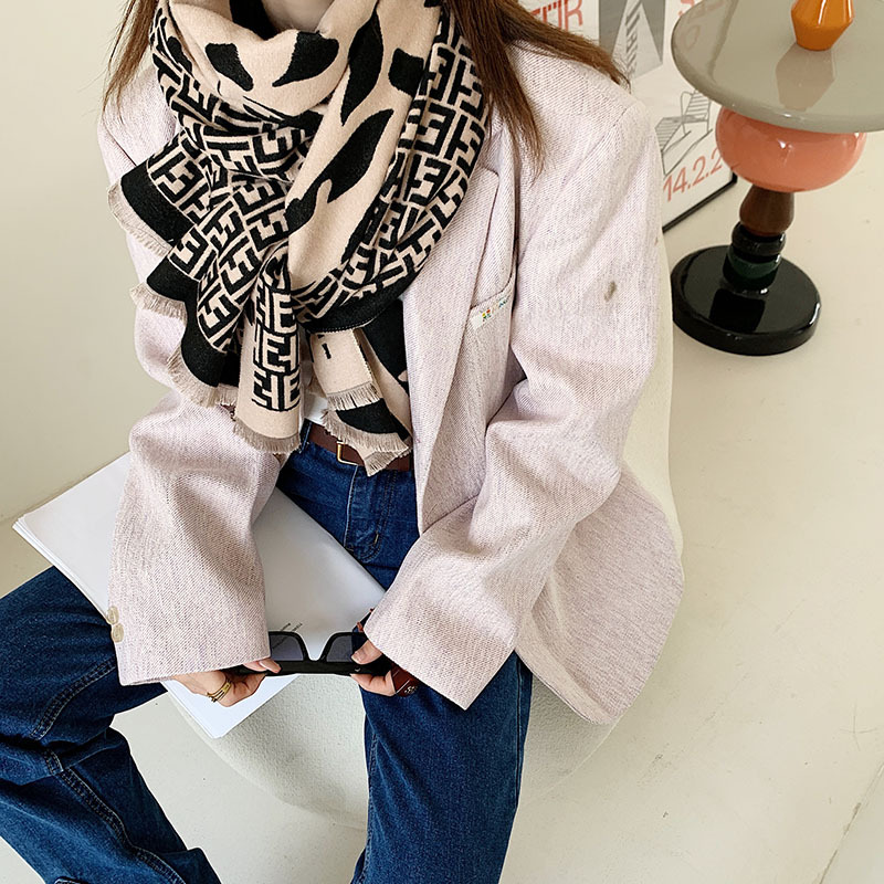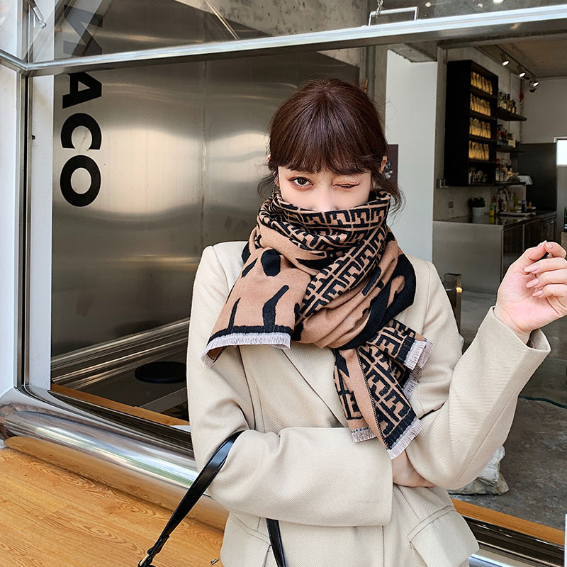 F 편지 위장 캐시미어 스카프 여성의 가을과 겨울 새로운 자카드 짧은 수염 숄 유럽과 미국 따뜻한 술 스카프스토어 가기