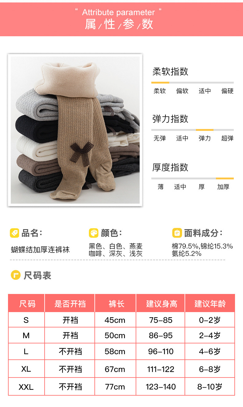 겨울 기모 두꺼운 어린이 팬티 스타킹 여자 나비 넥타이 팬티 스타킹 아기 아기 큰 PP 바지 바닥