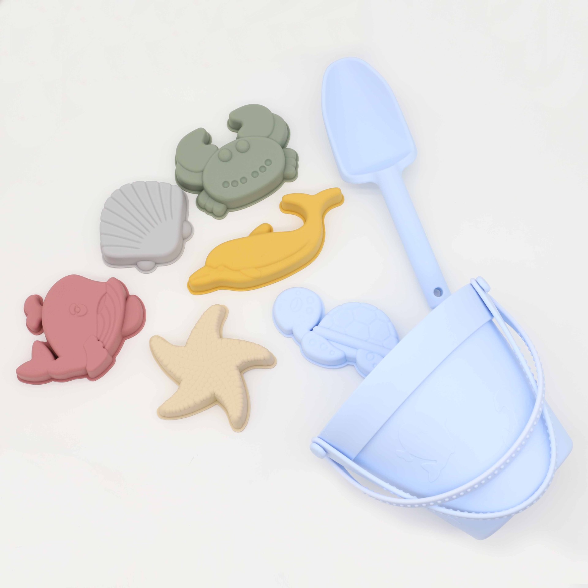 새로운 해변 휴대용 양동이 어린이 장난감 삽 바다 시리즈 물 부모-자식 모래 파기 실리콘 해변 장난감 세트