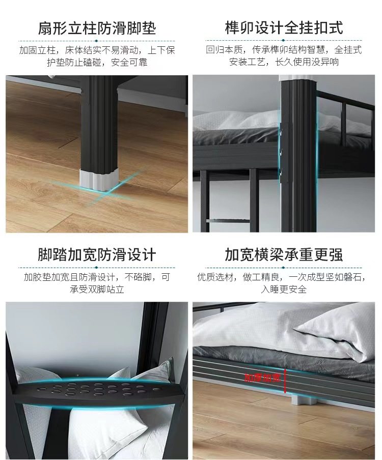 강철 두꺼운 이층 침대 학생 아파트 침대 철제 프레임 침대 직원 기숙사 이층 침대 프로파일 침대 철제 높낮이 침대