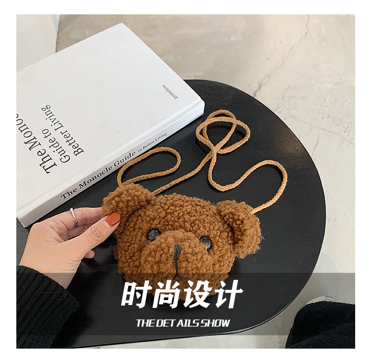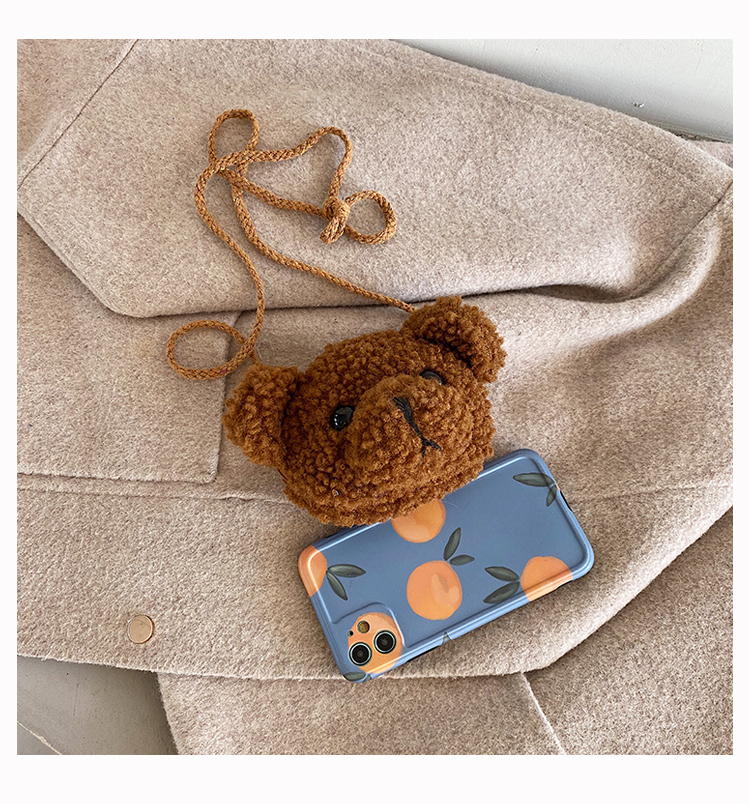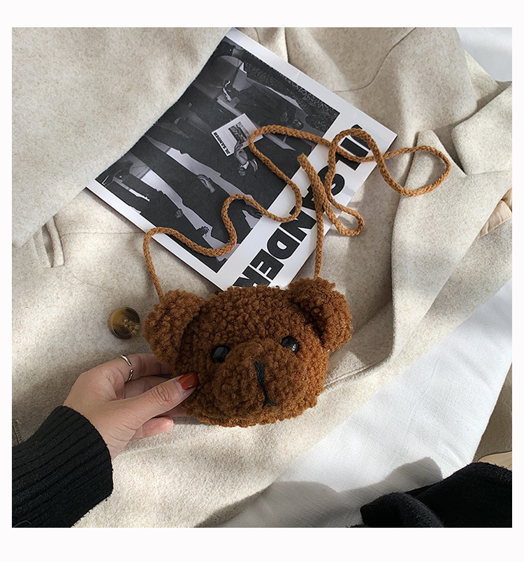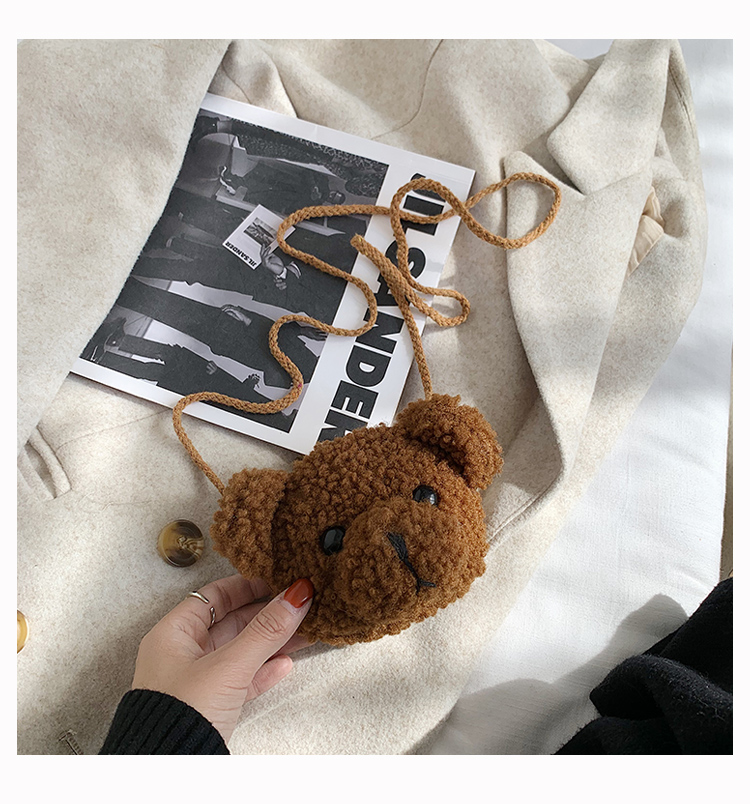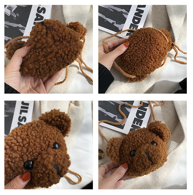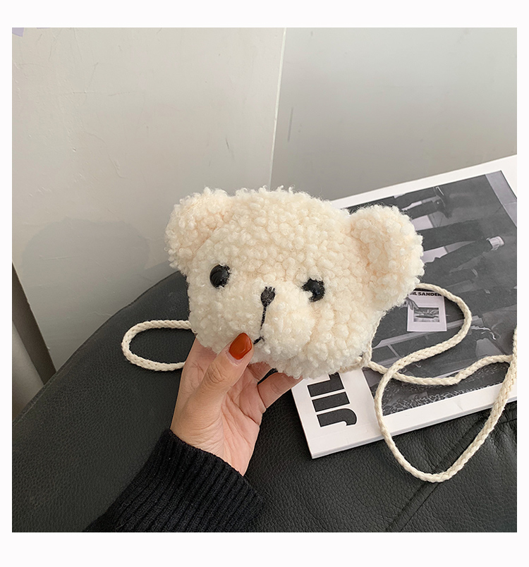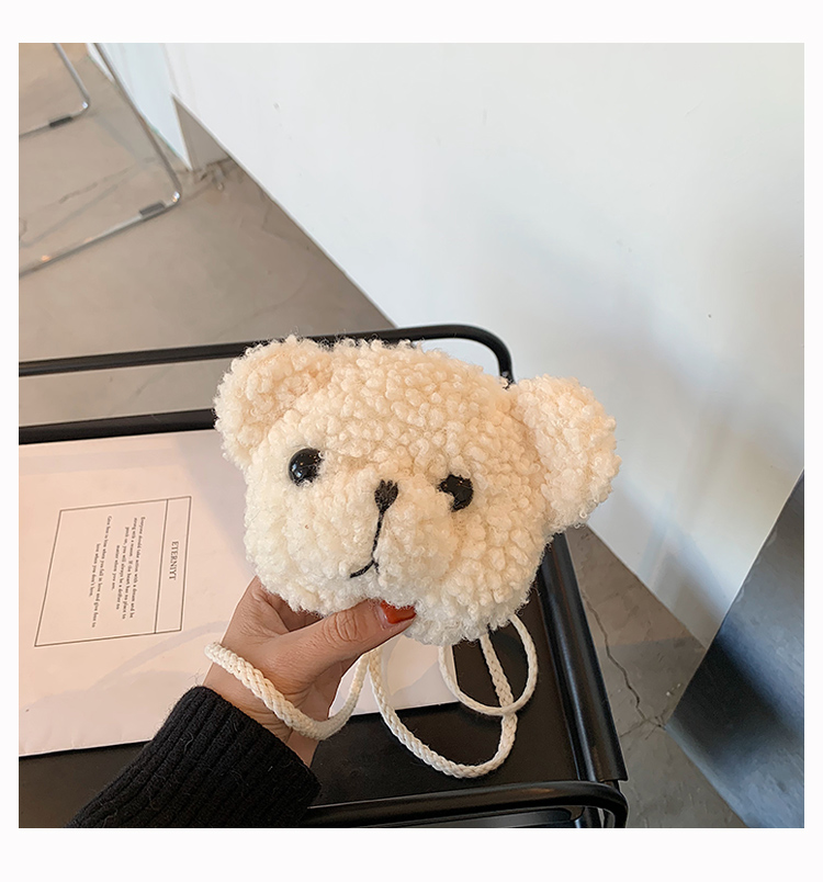 양고기 양모 가방 여성의 2024 새로운 만화 곰 머리 크로스 바디 가방 여성 학생 귀여운 소녀 심장 어깨 가방스토어 가기