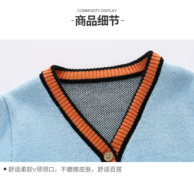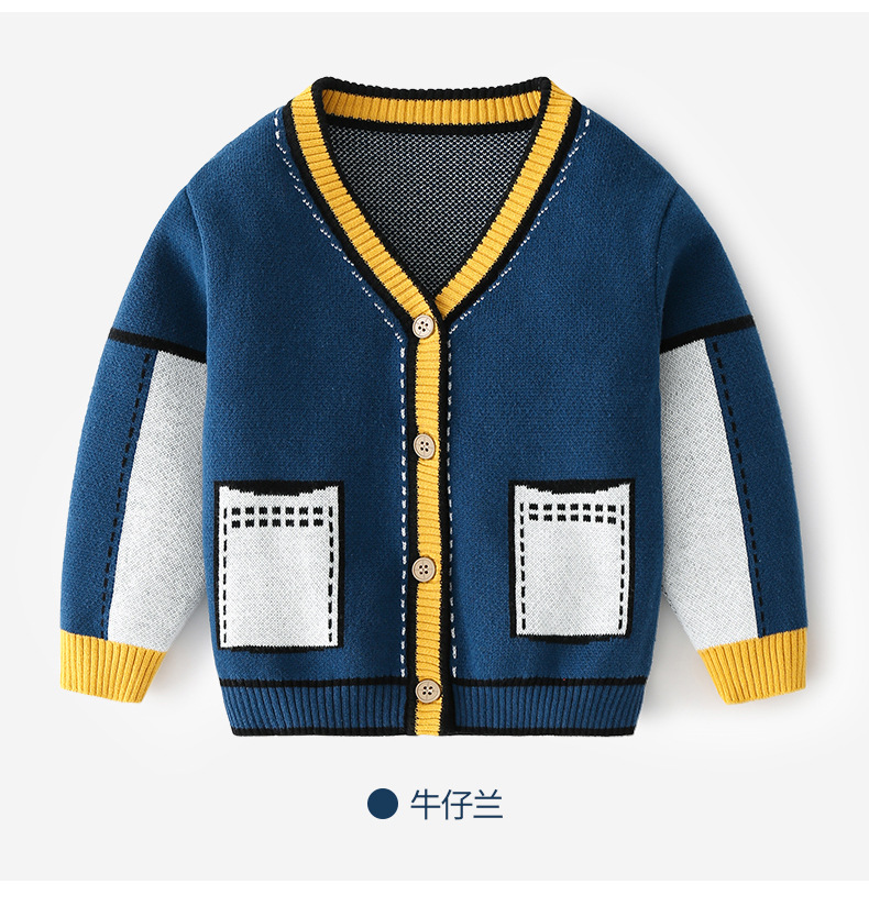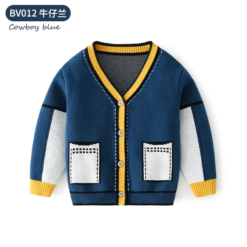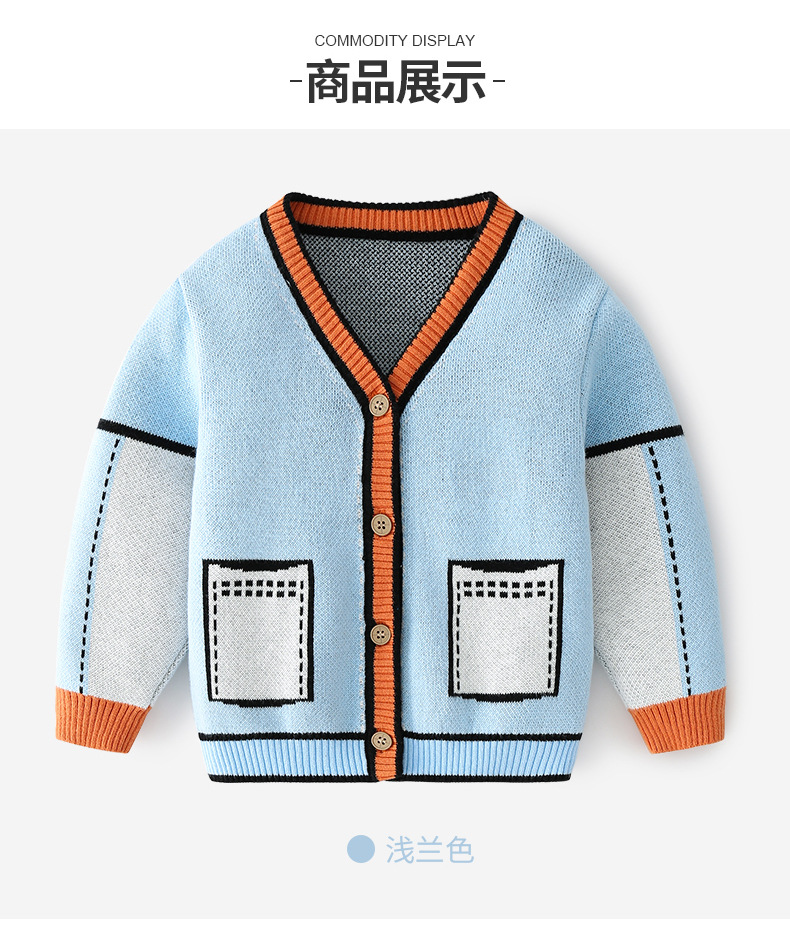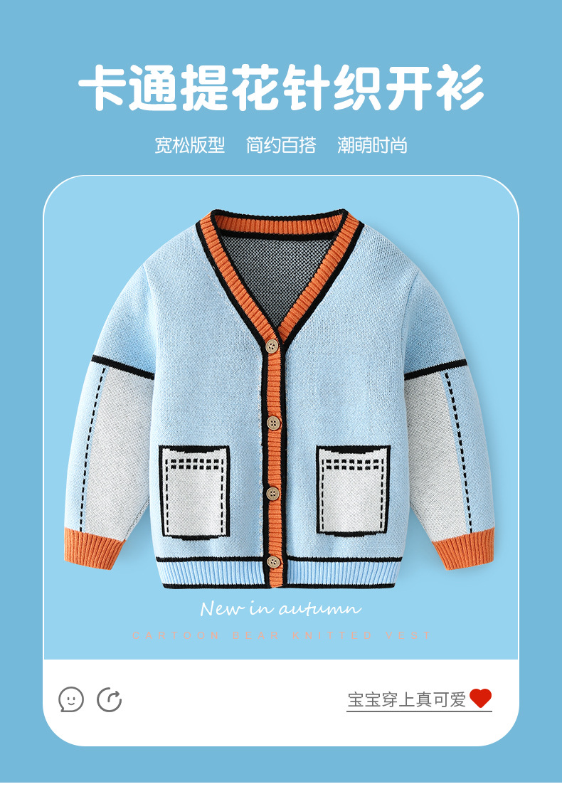 콤비네이션 코튼 신상 만화 대학 스타일 순면 아동 니트 재킷 봄, 가을 아동 브이넥 자카드 가디건 탑스토어 가기