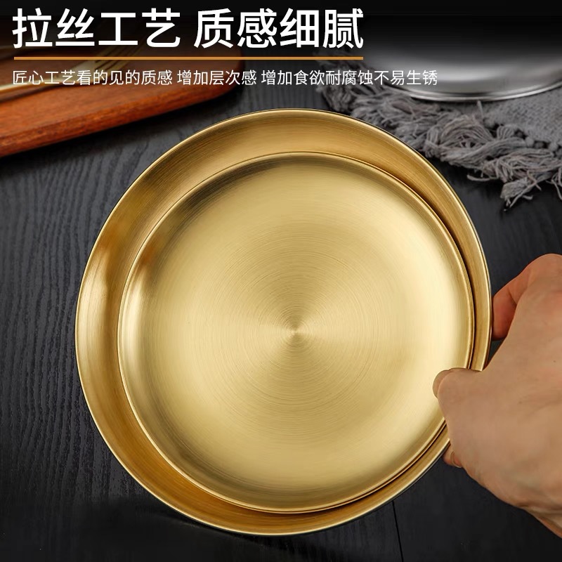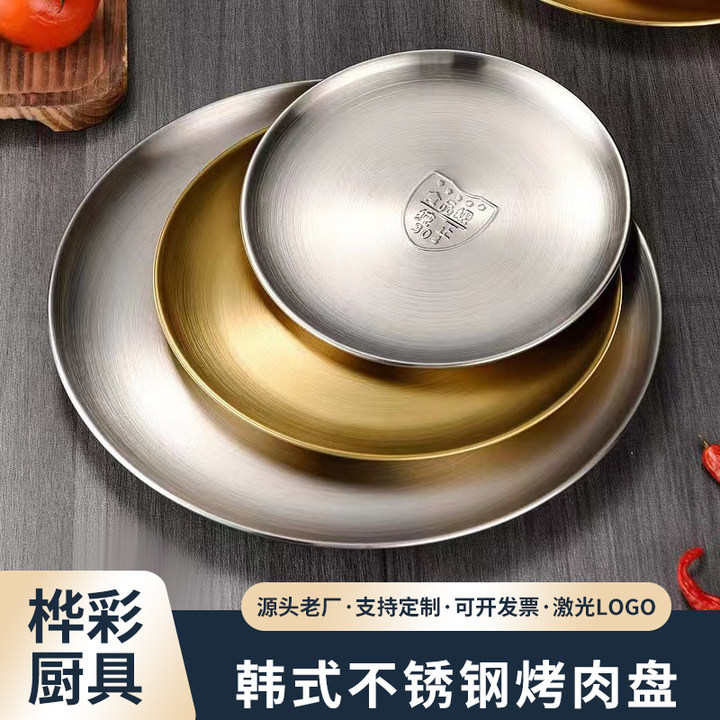 한국 바베큐 플레이트 304 스테인레스 스틸 플레이트 셀프 서비스 간단한 황금 둥근 뼈 침 판 크로스 보더 스페셜 플레이트 도매스토어 가기