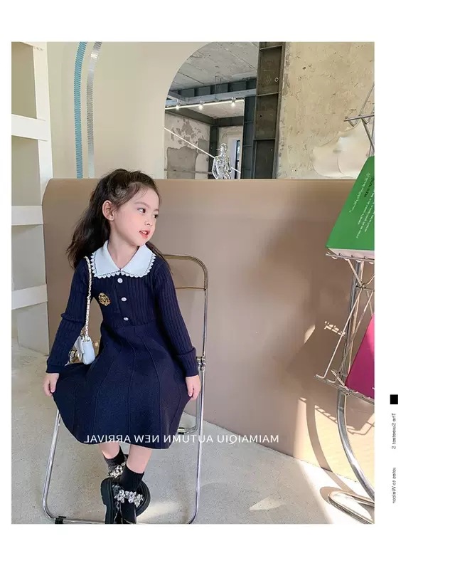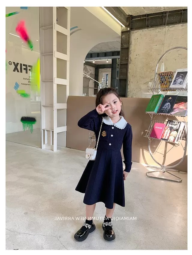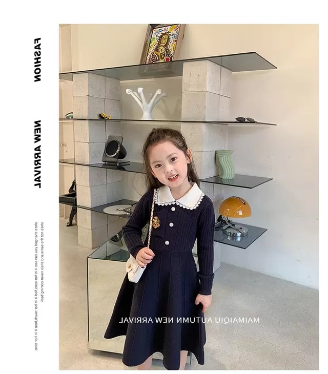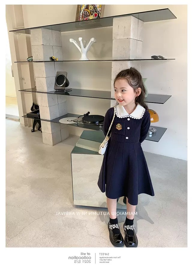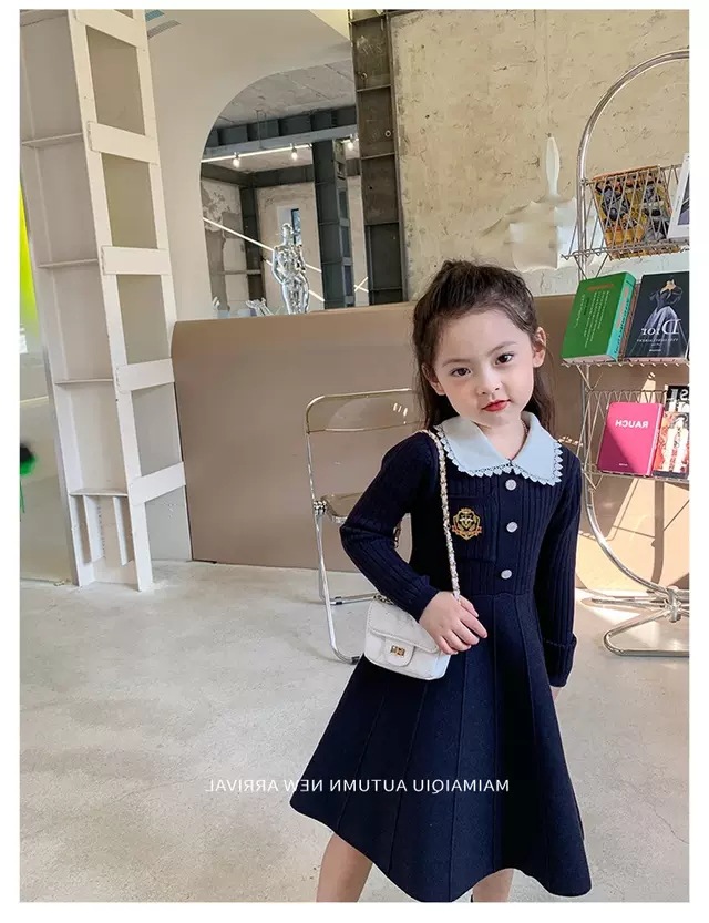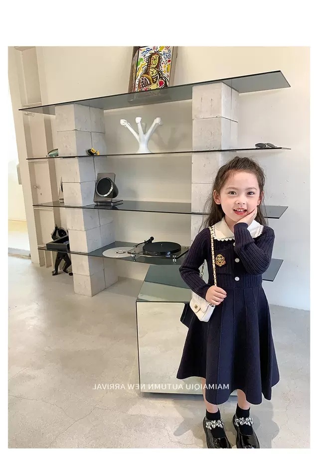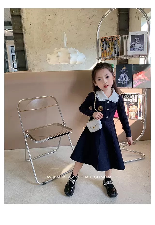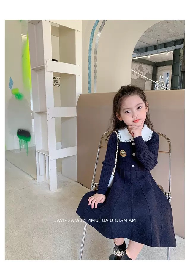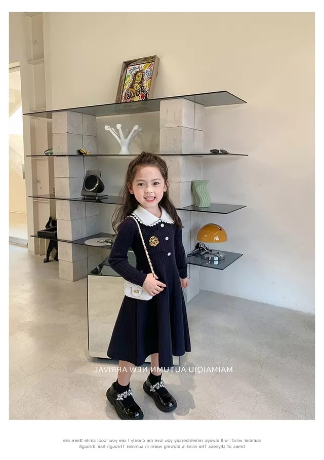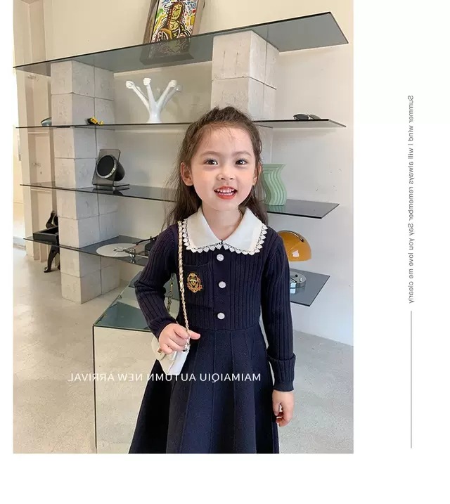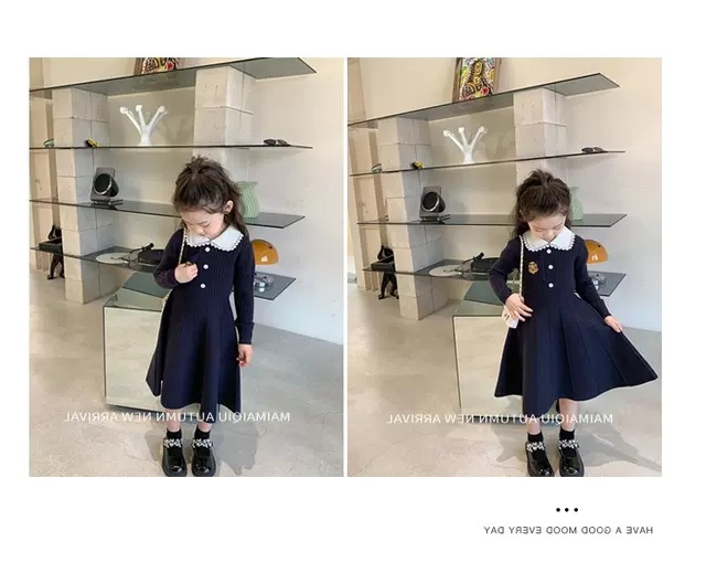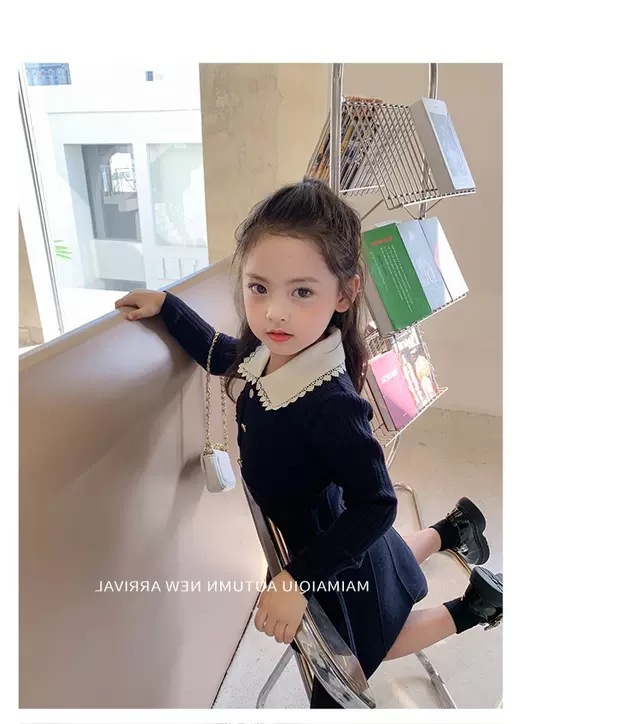 여아 2025 봄 가을 신상 아기 대학풍 모직 스커트 어린이 긴팔 카라 스웨터 원피스스토어 가기