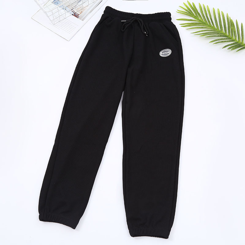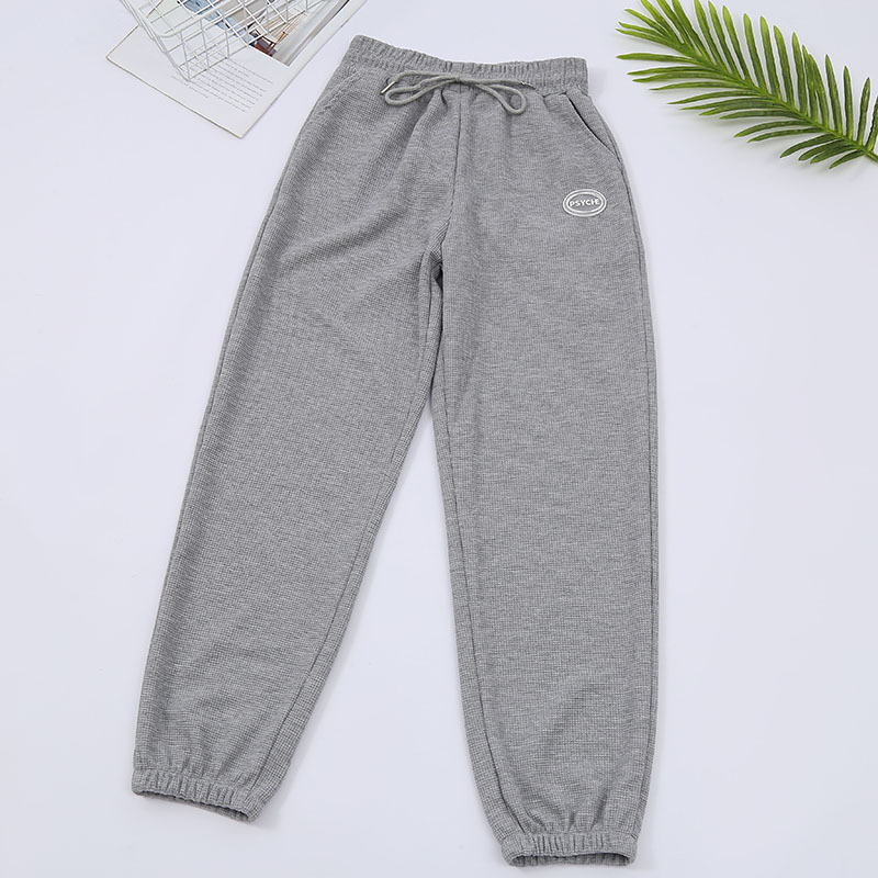 와플 스포츠 바지 여성의 가을 새로운 하이 웨이스트 슬리밍 그레이 캐주얼 스웨트 팬츠 한국식 크롭 느슨한 발목 바지