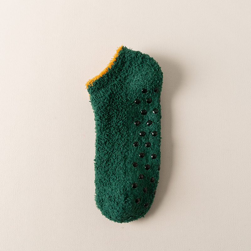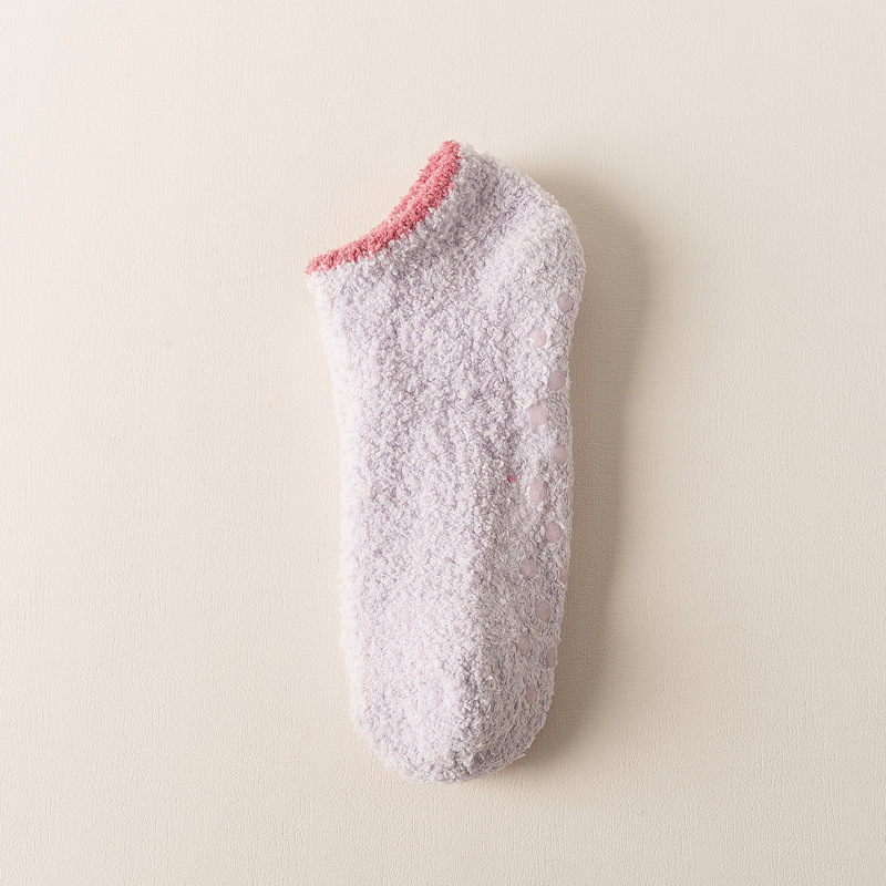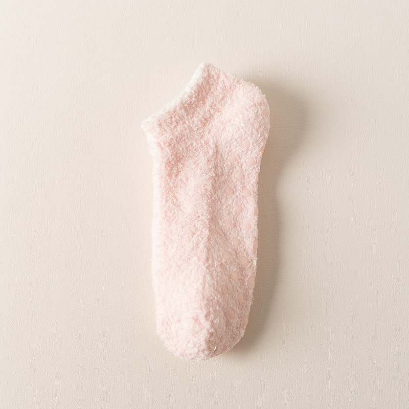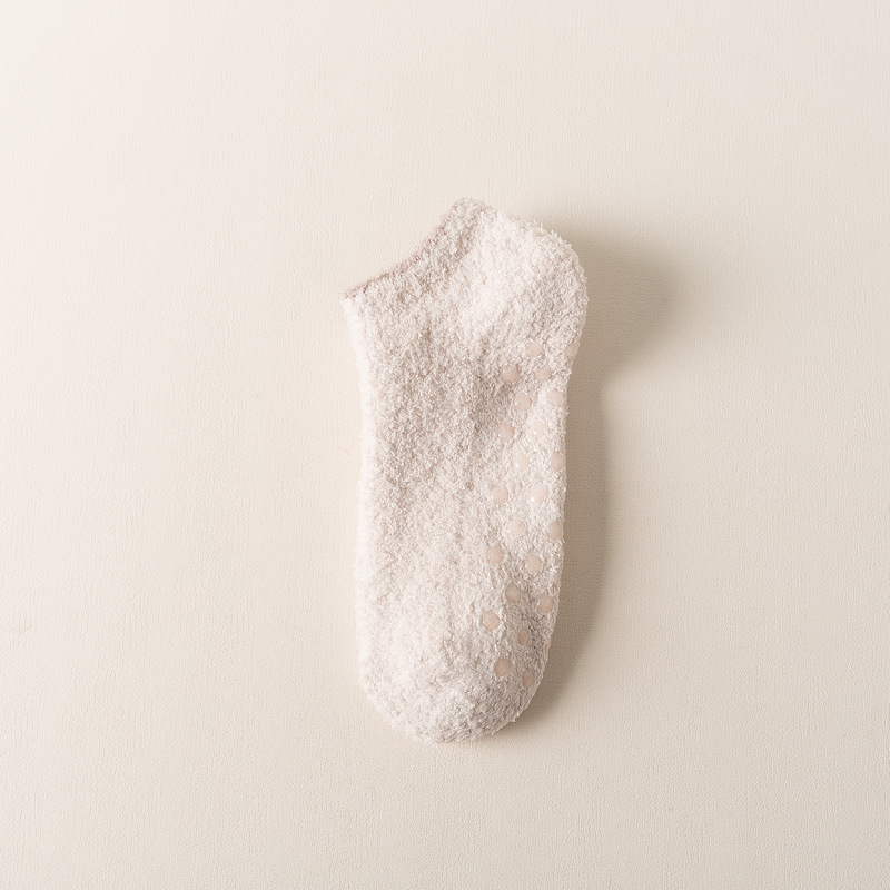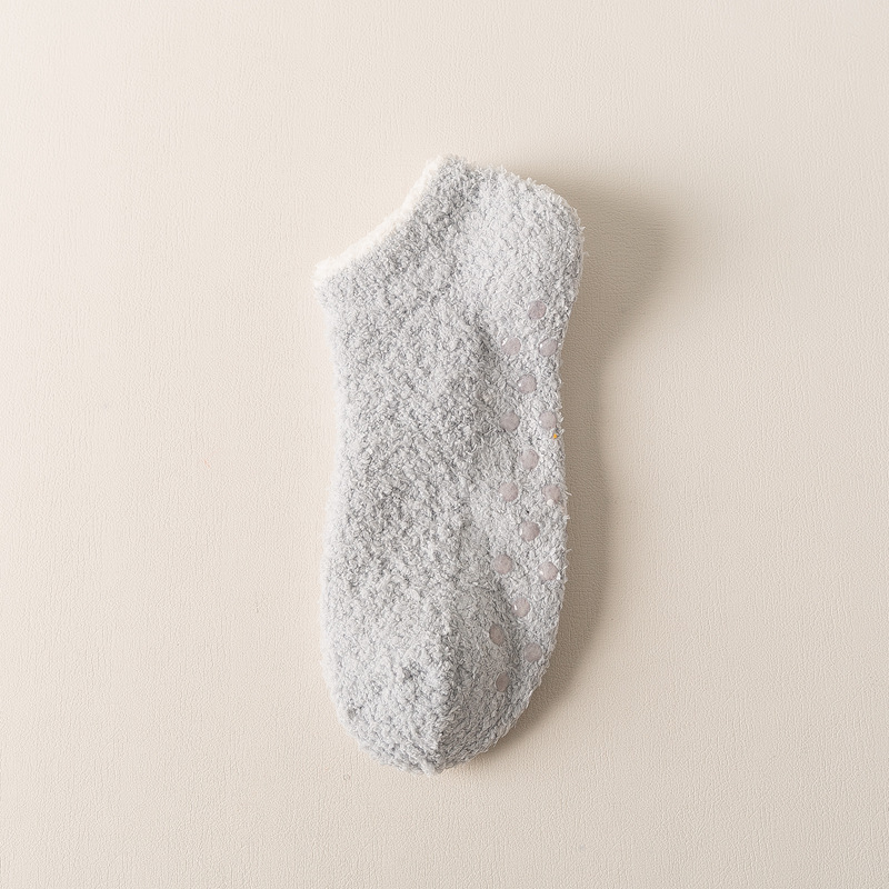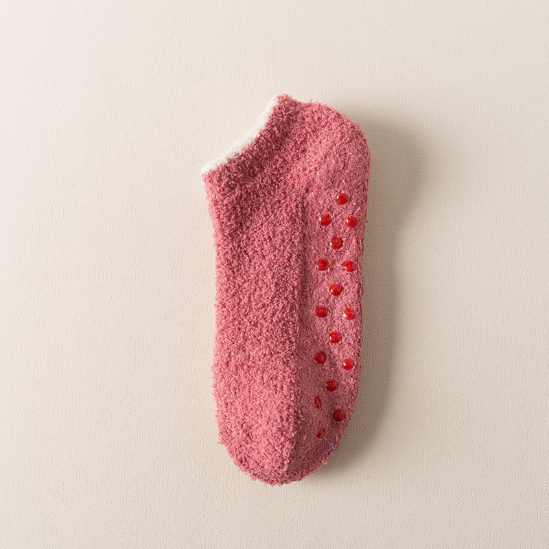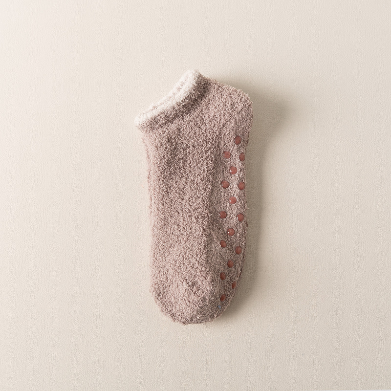 보트 양말 산호 벨벳 짧은 양말 여성의 얕은 입 보이지 않는 하프 벨벳 가을, 겨울 두꺼운 여성 양말 실리콘 미끄럼 방지 바닥 양말