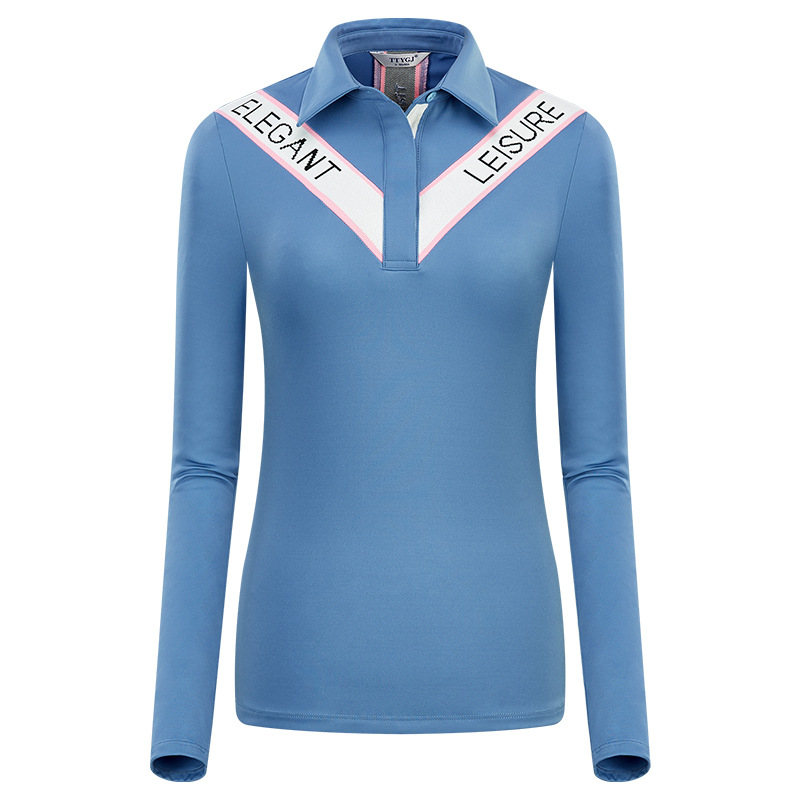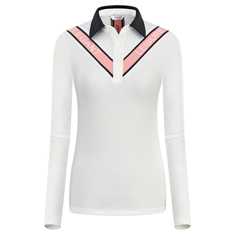 골프 여성용 봄과 가을 긴팔 부드럽고 편안한 캐주얼 스포츠웨어 POLO 칼라 대비 저지 티셔츠 베이스 셔츠