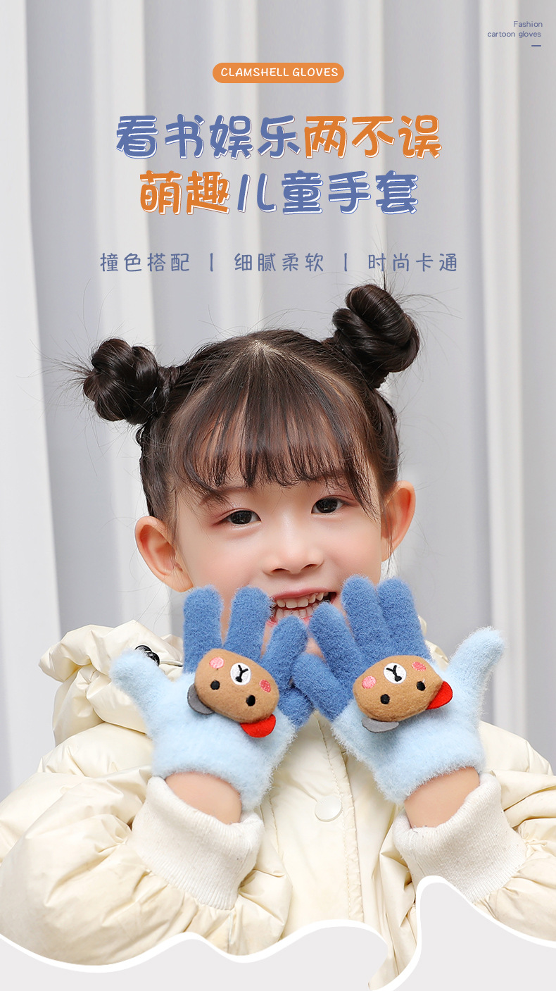 어린이 아기 장갑 야외 손가락 놀이 장갑 가을과 겨울 벨벳 두꺼운 귀여운 따뜻한 다섯 손가락 장갑
