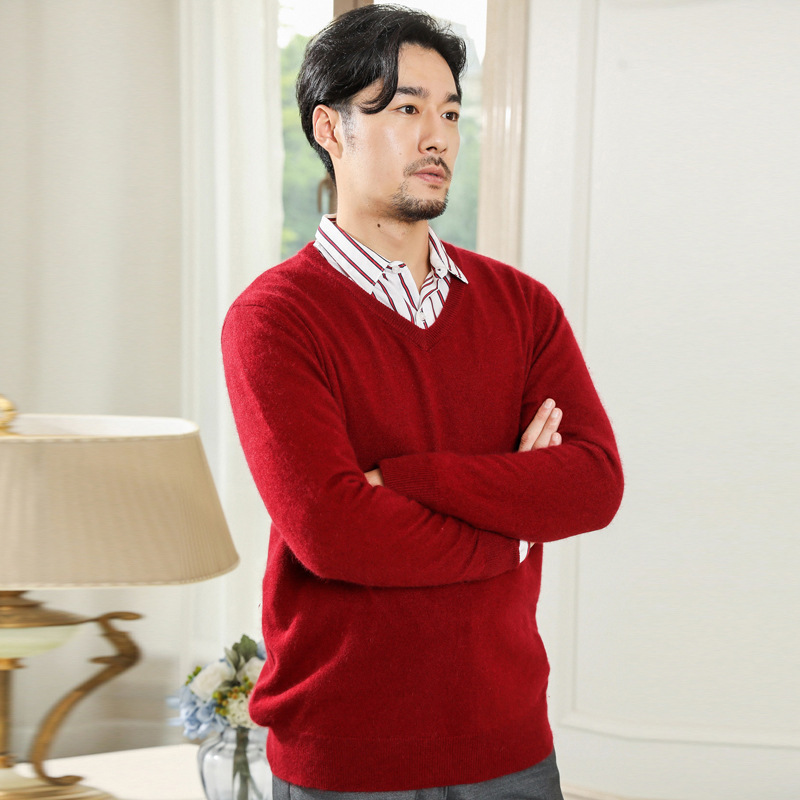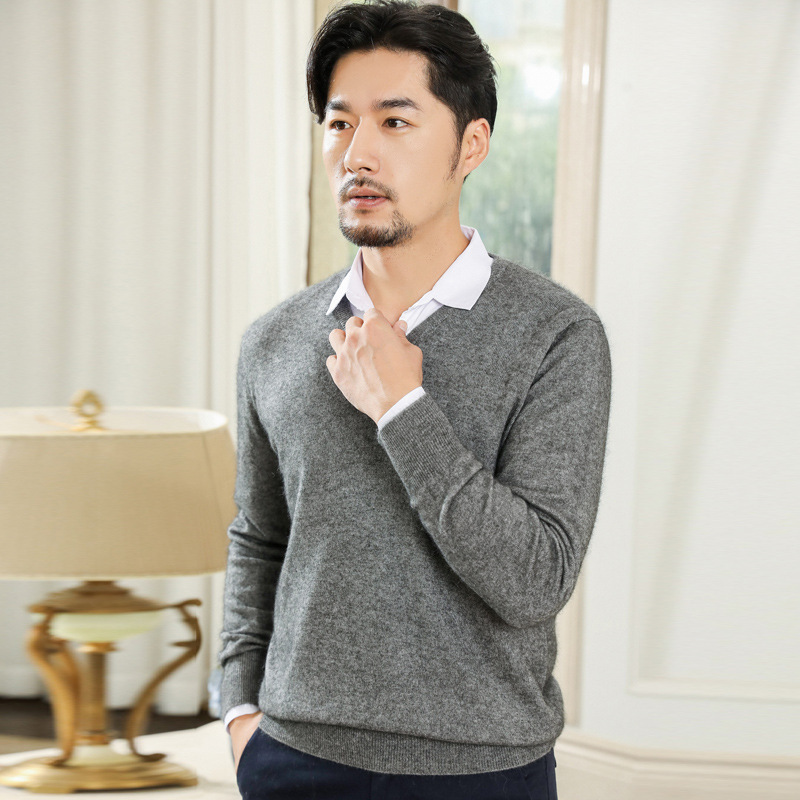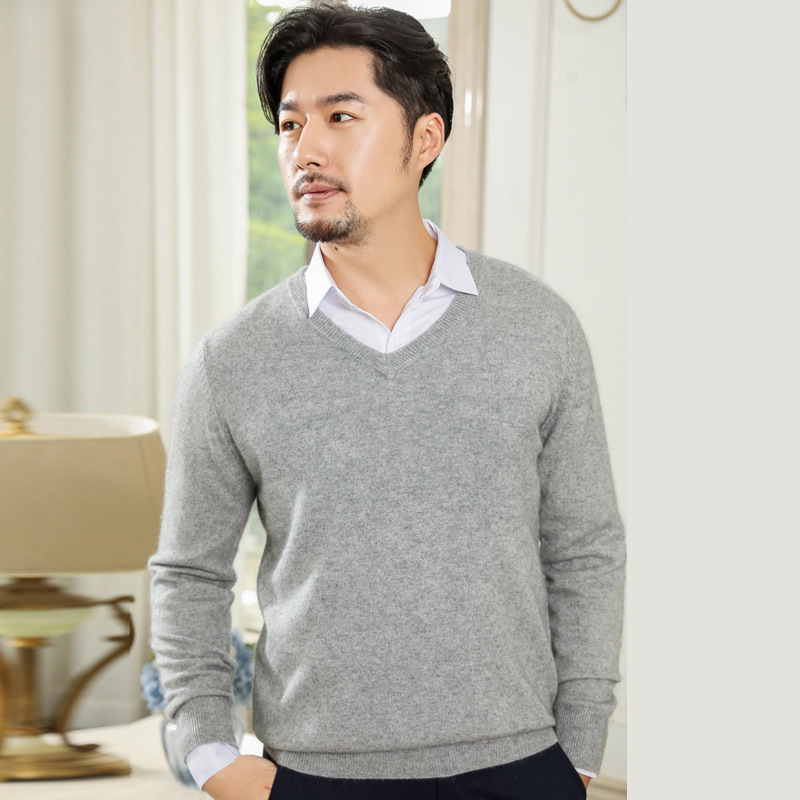 공장 도매 남자의 가을과 겨울 스웨터 가을과 겨울 V-넥 단색 스웨터 풀오버 캐주얼 느슨한 플러스 사이즈 기본 셔츠