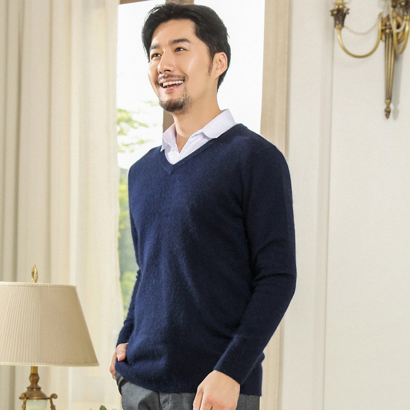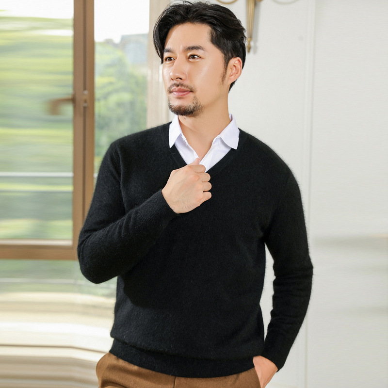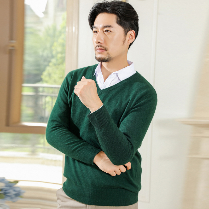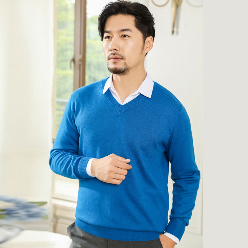 공장 도매 남자의 가을과 겨울 스웨터 가을과 겨울 V-넥 단색 스웨터 풀오버 캐주얼 느슨한 플러스 사이즈 기본 셔츠스토어 가기