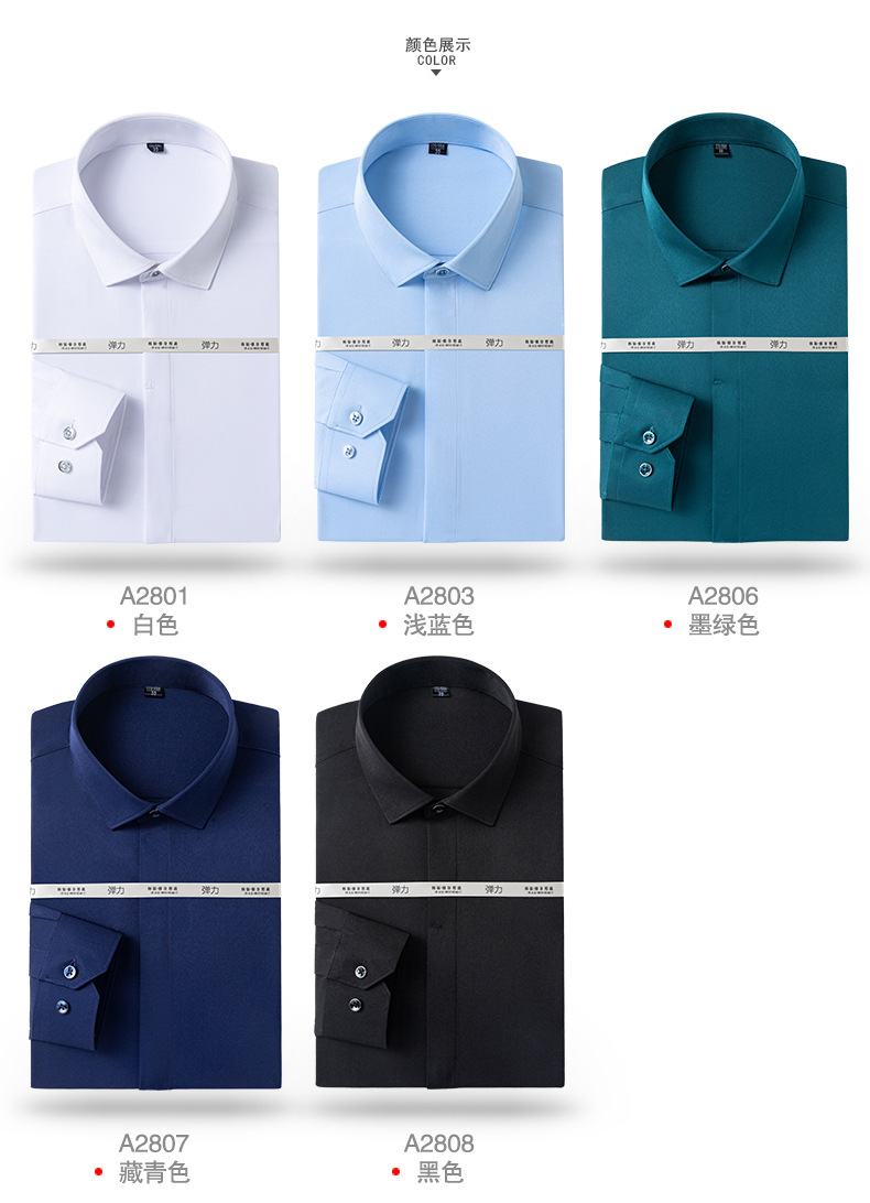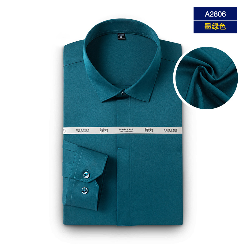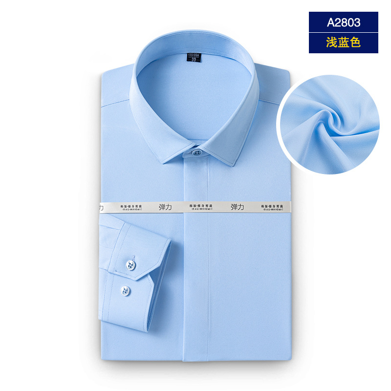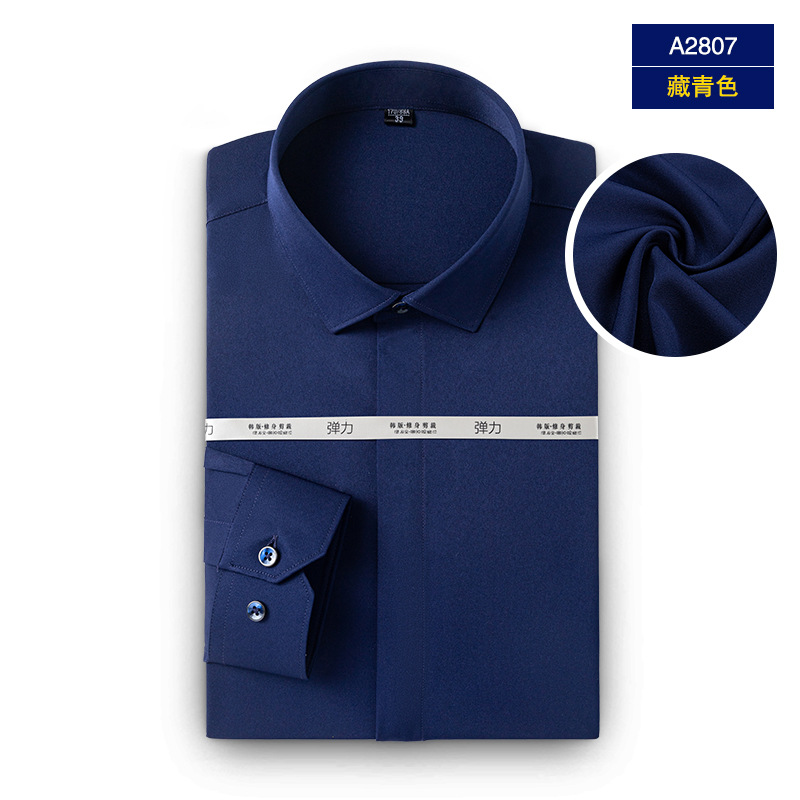 엄선된 남성용 새 스트레치 비즈니스 캐주얼 셔츠, 남성용 긴팔 패셔너블 포멀 다크 플래킷 솔리드 컬러 셔츠, 다용도