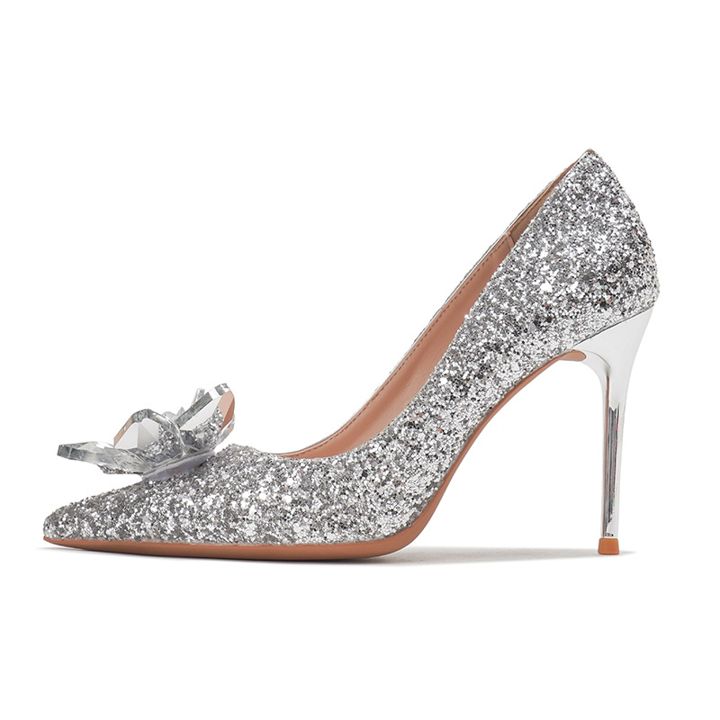 여성 하이힐 2023 가을 새로운 스틸레토 힐 뾰족한 발가락 에티켓 작업 신발 라인 스톤 미드 힐 웨딩 슈즈 신부 신발스토어 가기