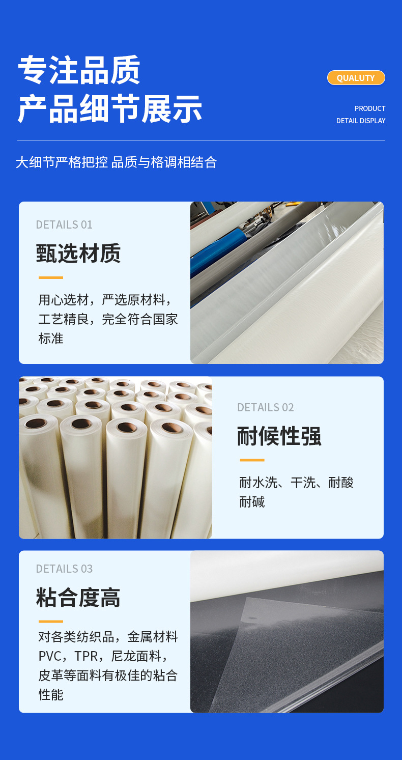 다운 재킷 셔츠 재킷 플래켓 목선 커프스가 두껍게 된 원활한 접이식 접착제 TPU 핫멜트 접착 필름