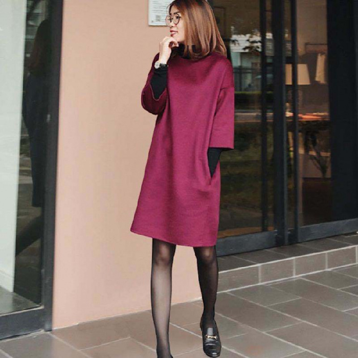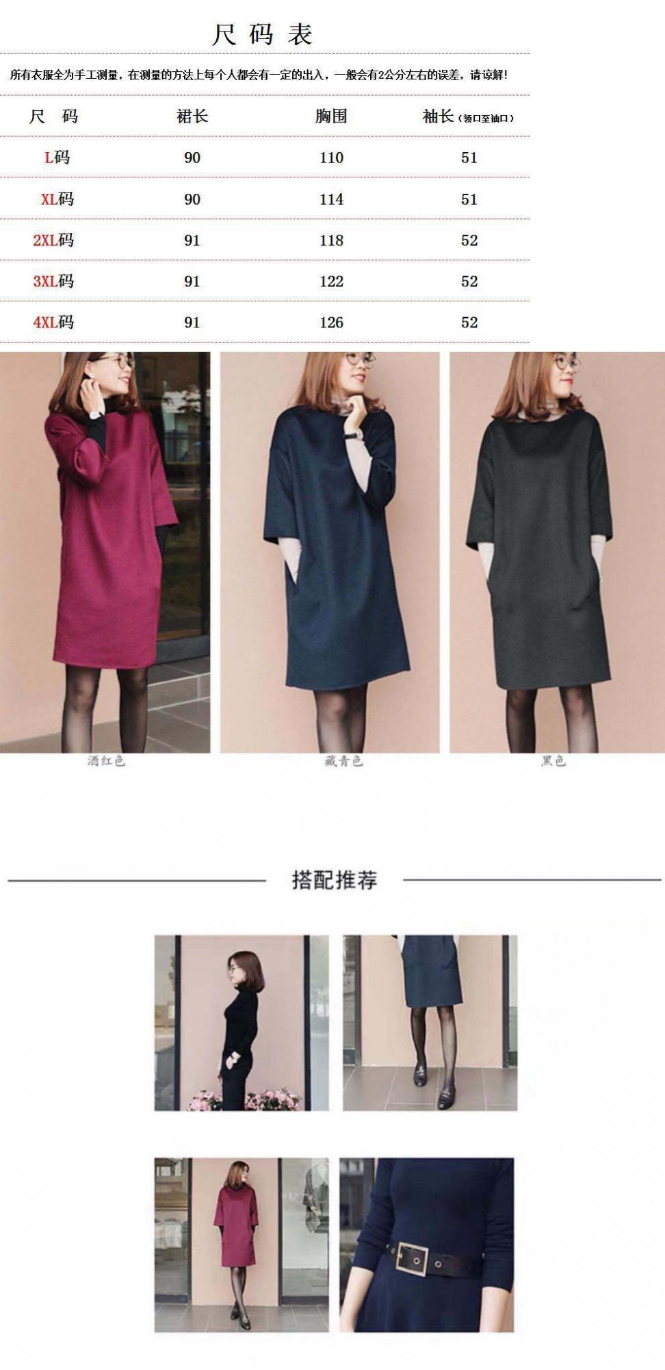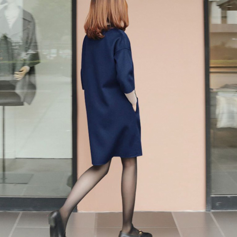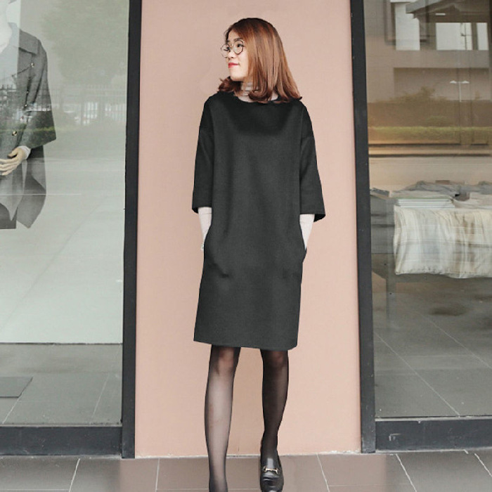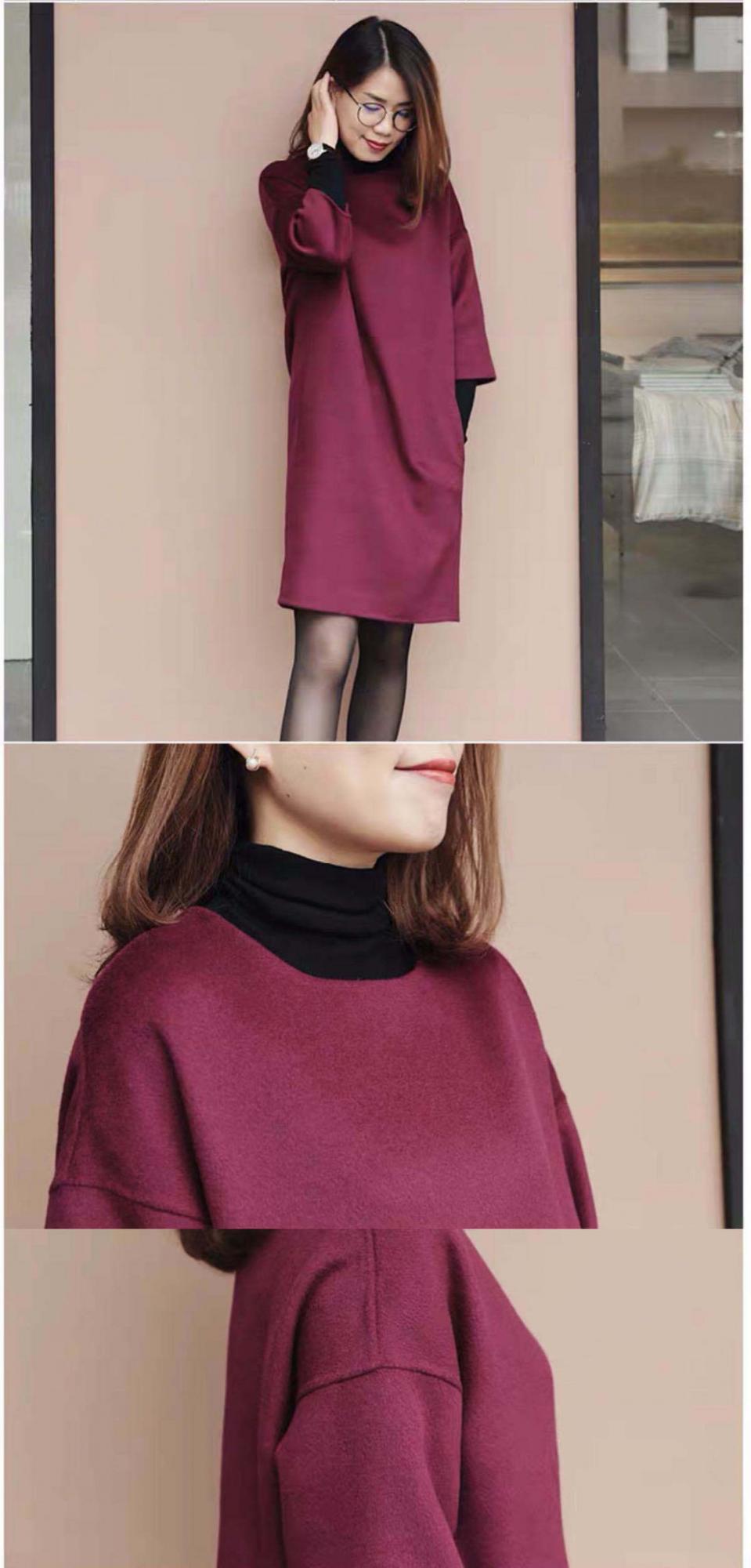 가을과 겨울 모직 원피스 여자의 7 점 소매 2021 새로운 느슨한 어깨 슬리밍 모직 베이스 스커트스토어 가기