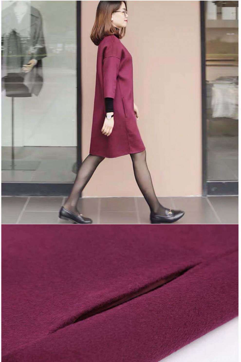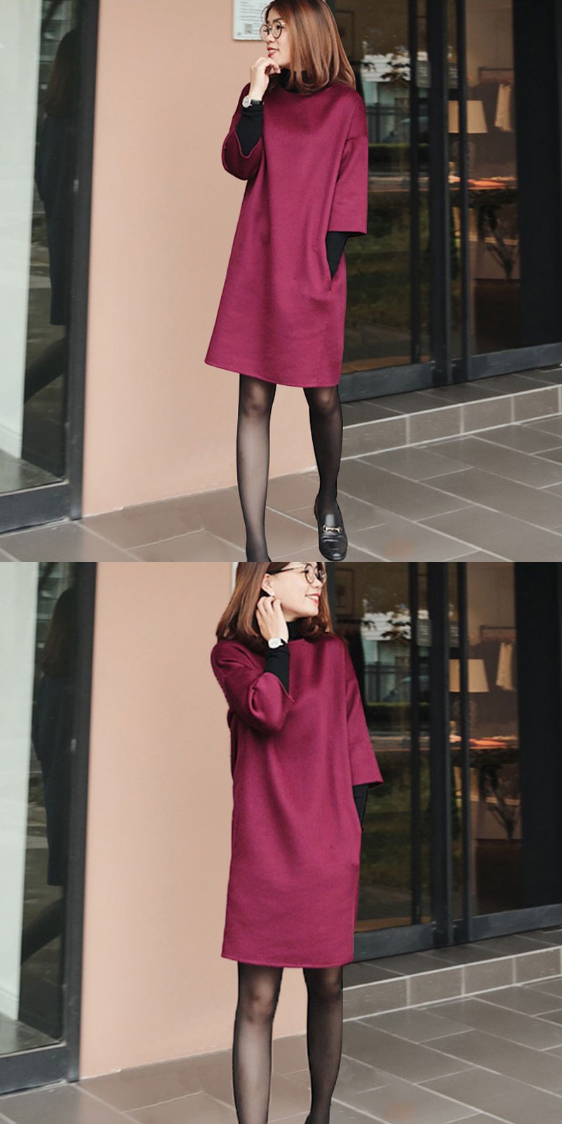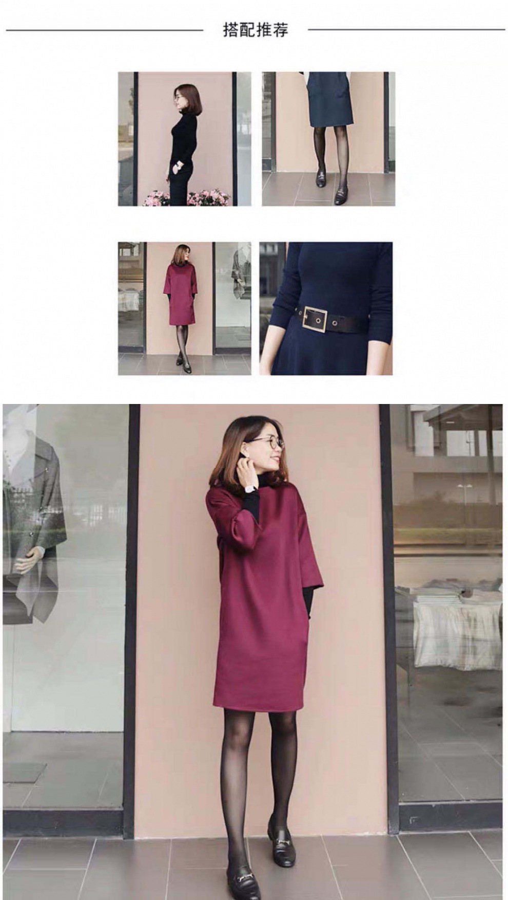 가을과 겨울 모직 원피스 여자의 7 점 소매 2021 새로운 느슨한 어깨 슬리밍 모직 베이스 스커트스토어 가기