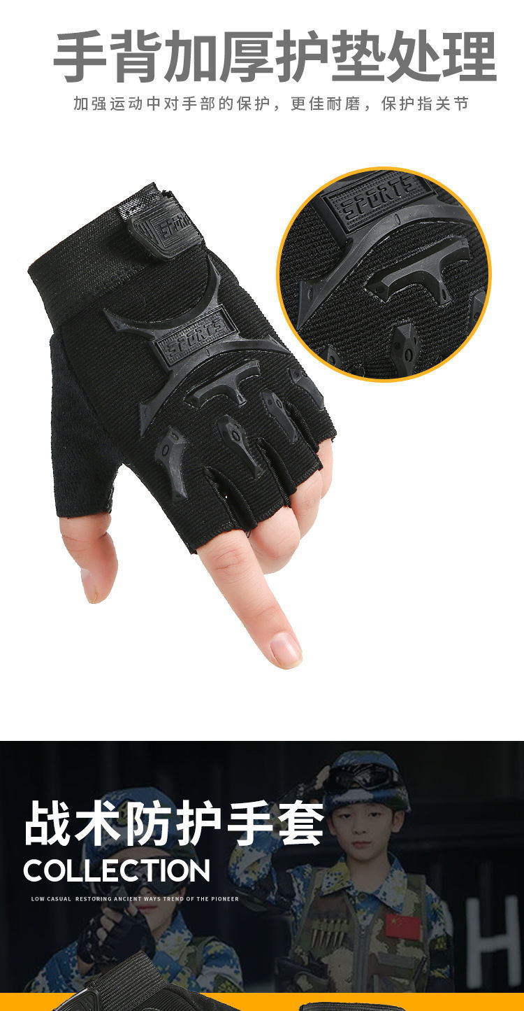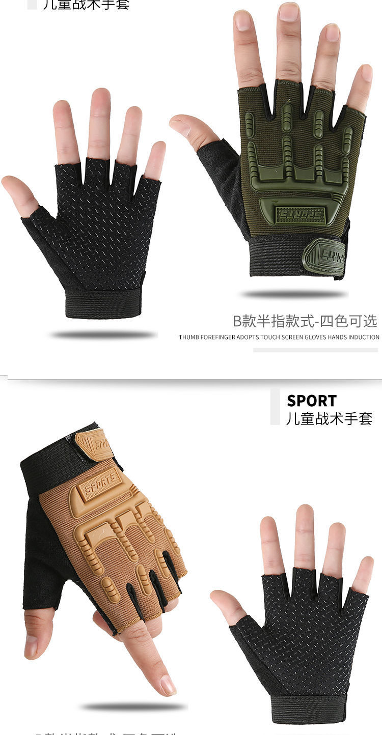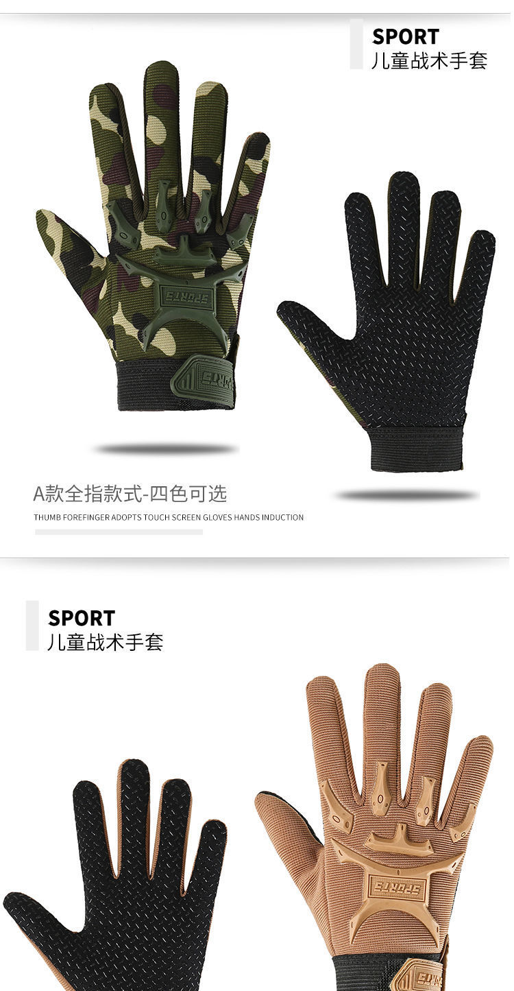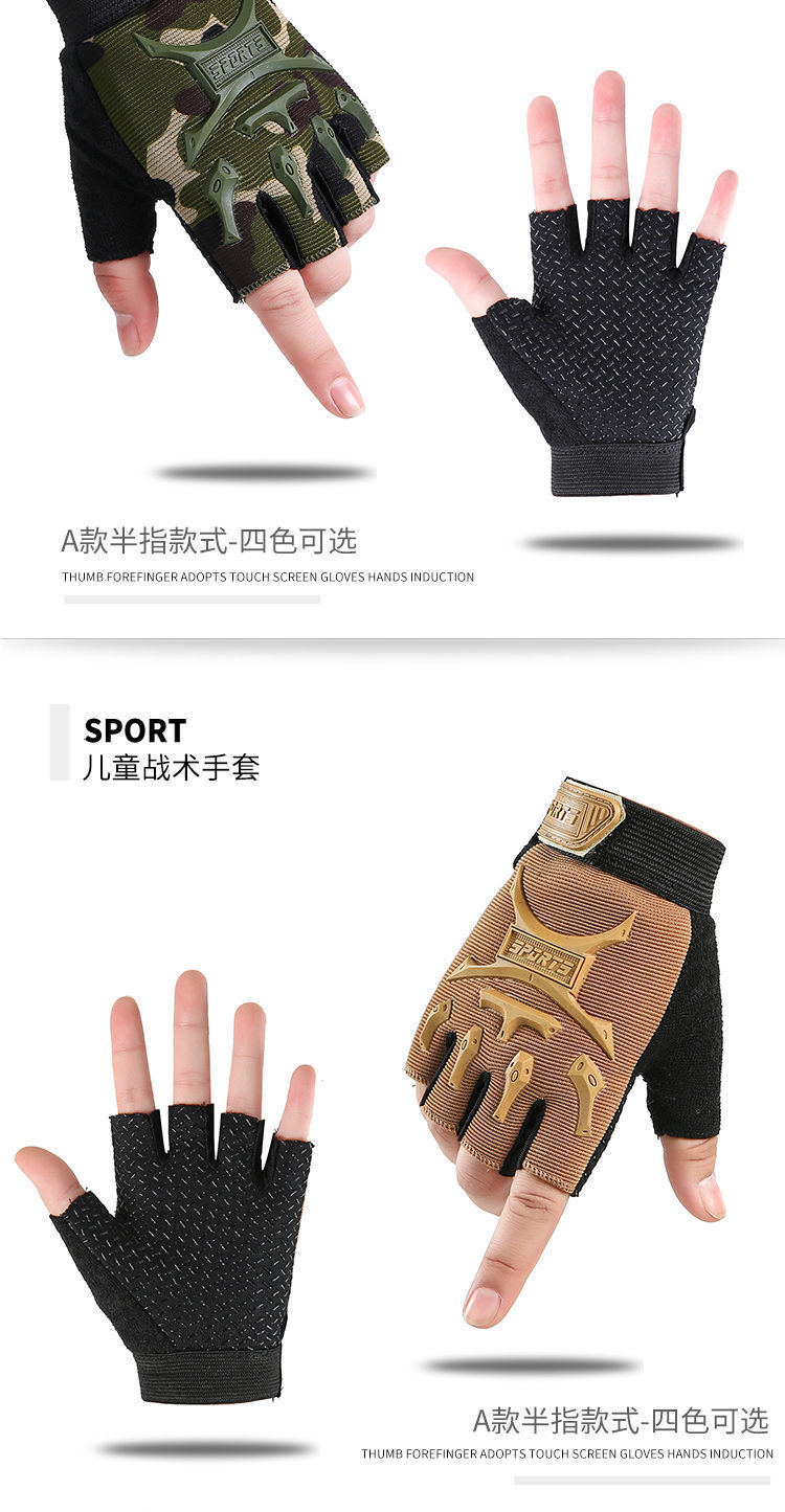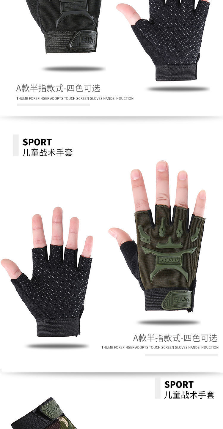 어린이 전술 장갑 반손가락 사이클링 훈련 장갑 소년 소녀 야외 스포츠 전체 손가락 장갑 보호 장갑