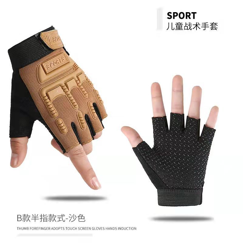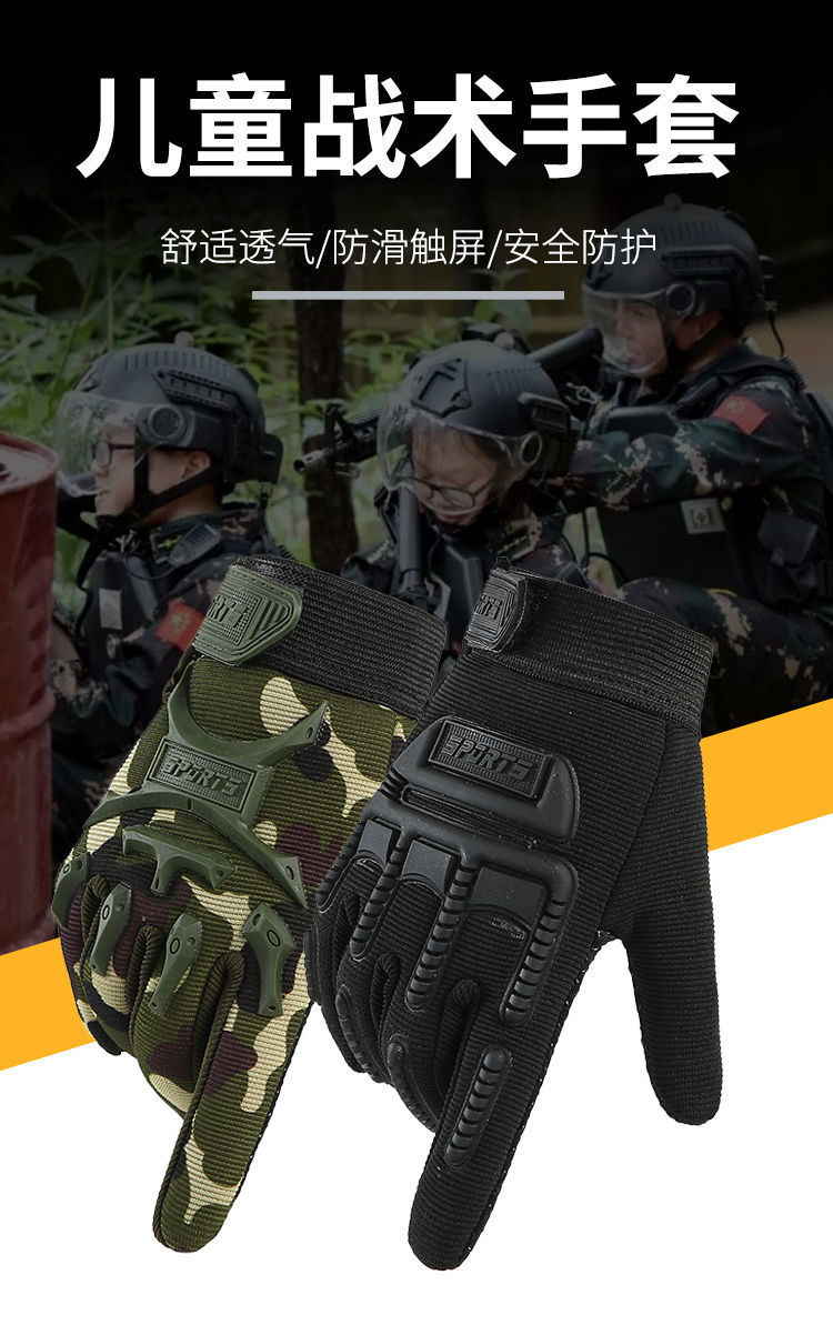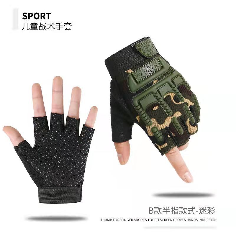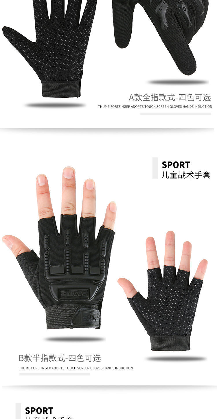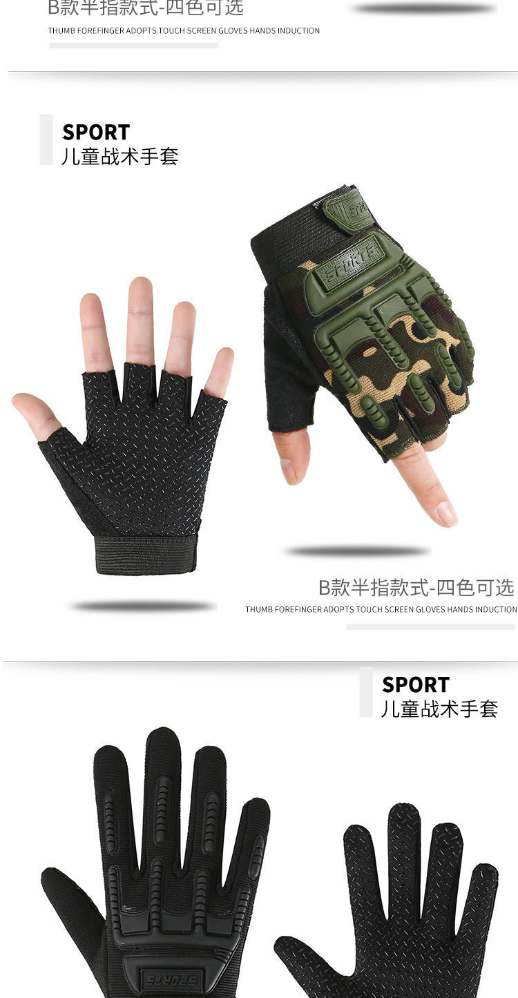 어린이 전술 장갑 반손가락 사이클링 훈련 장갑 소년 소녀 야외 스포츠 전체 손가락 장갑 보호 장갑