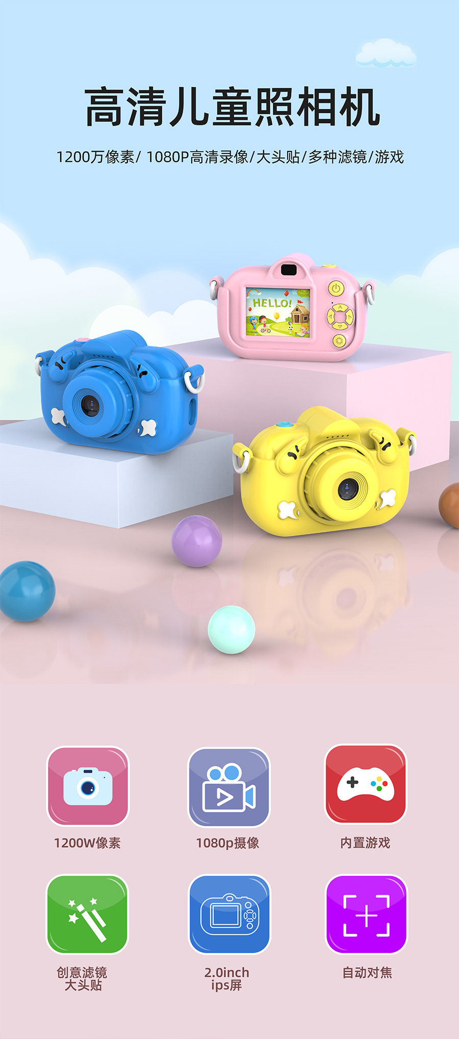 국경을 넘는 디지털 고화질 어린이 미니 카메라 초등학생 카메라 장난감 만화 촬영 어린이 장난감 카메라