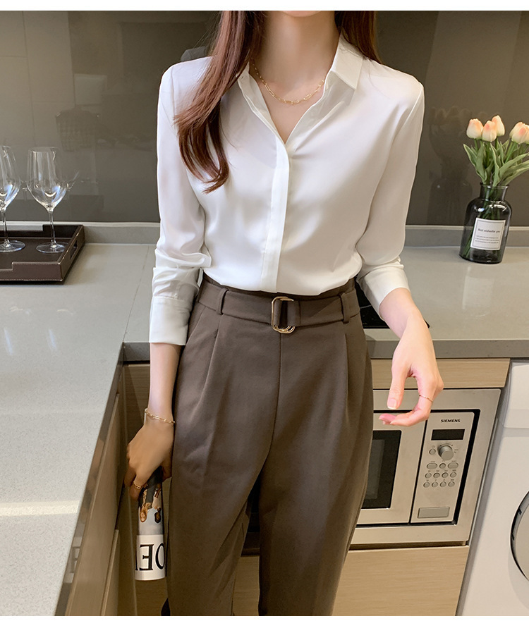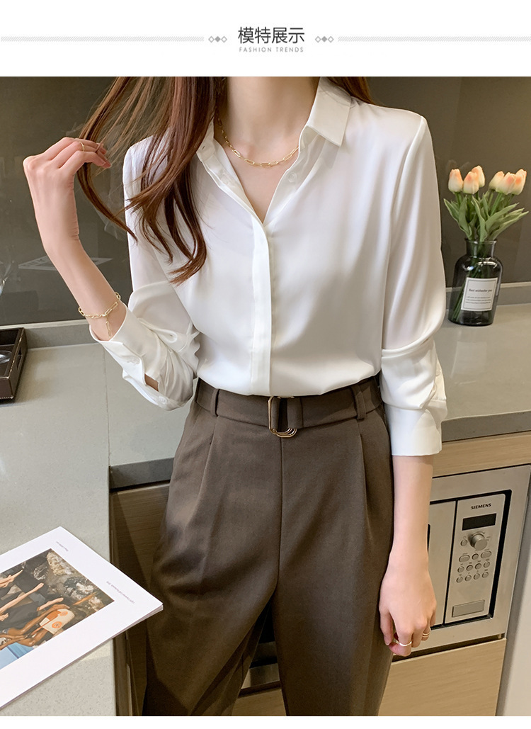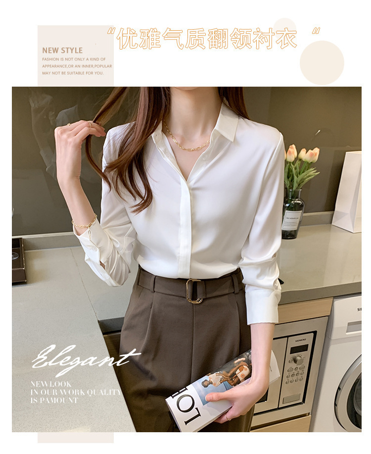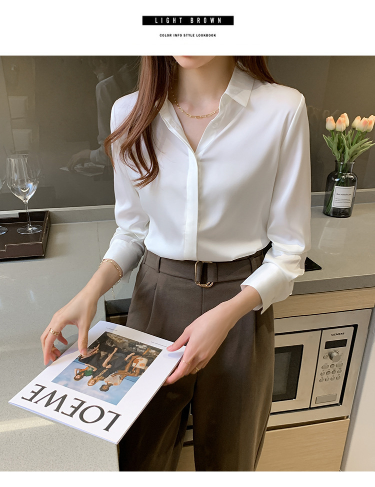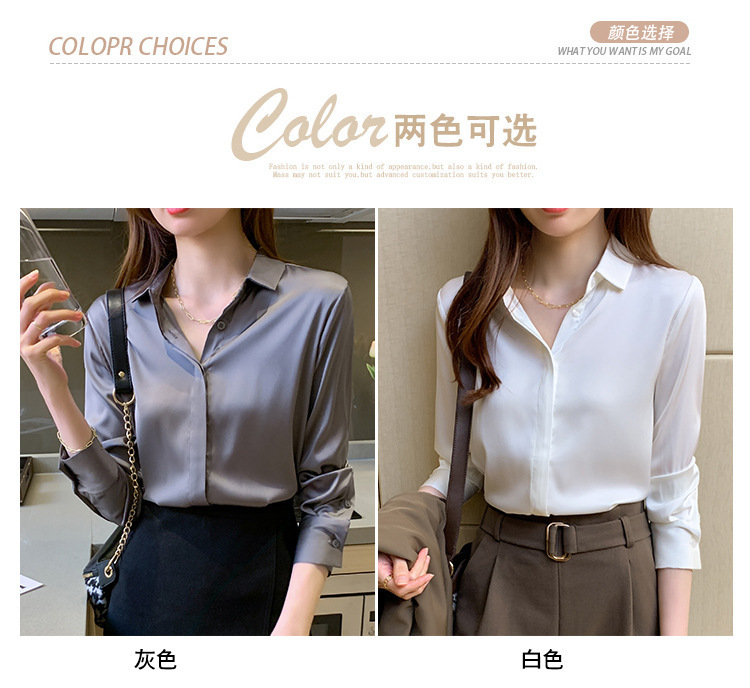 크로스 보더 가을 새틴 긴팔 셔츠 여성의 디자인 감각 틈새 빛 성숙한 홍콩 스타일 전문 통근 쉬폰 셔츠 여성