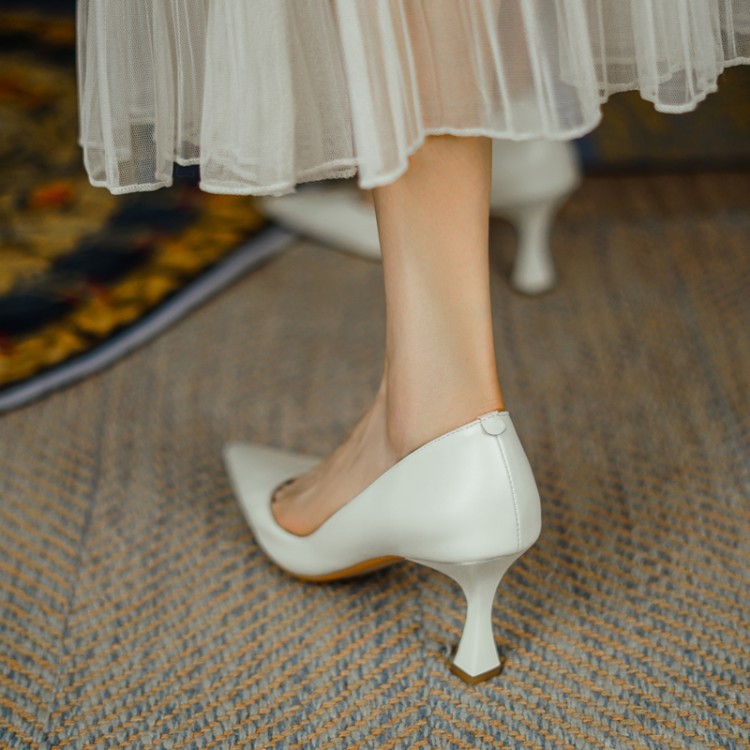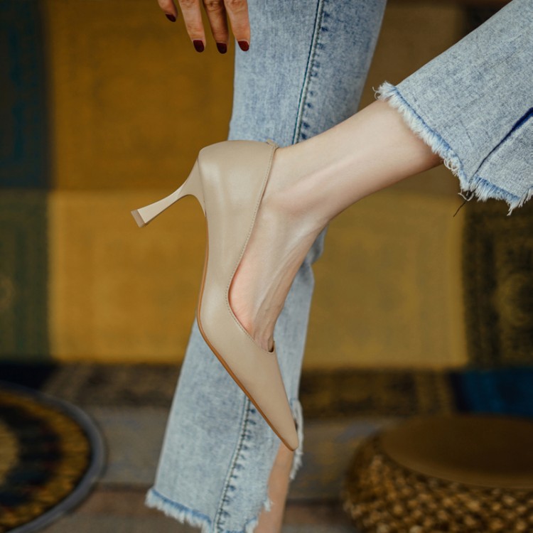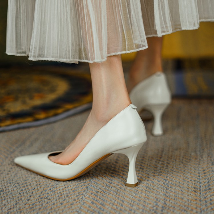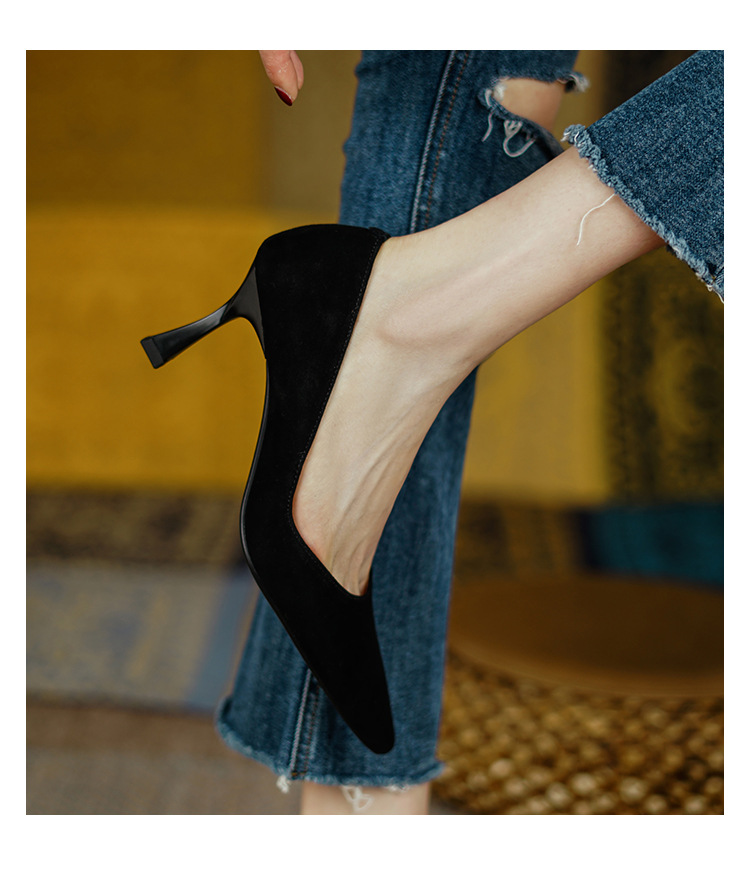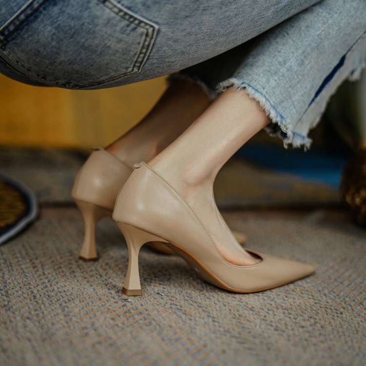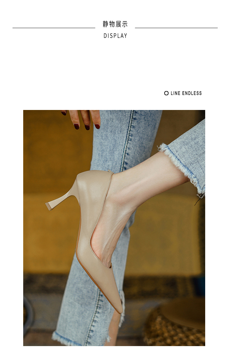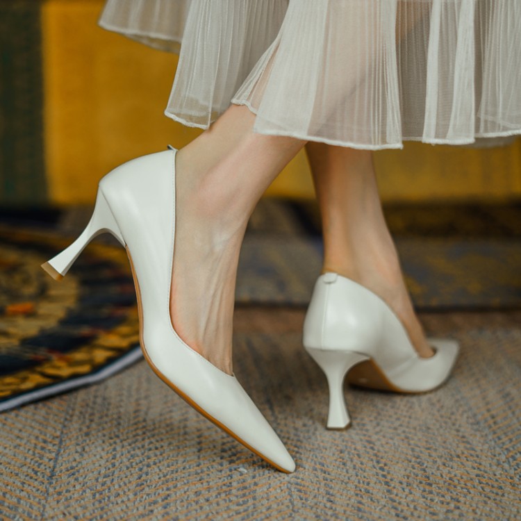 여성용 전체 가죽 신발 스틸레토 힐 뾰족한 발가락 얕은 입 신발 양가죽 한국식 뾰족한 발가락 우아한 하이힐 통근 작업 신발스토어 가기