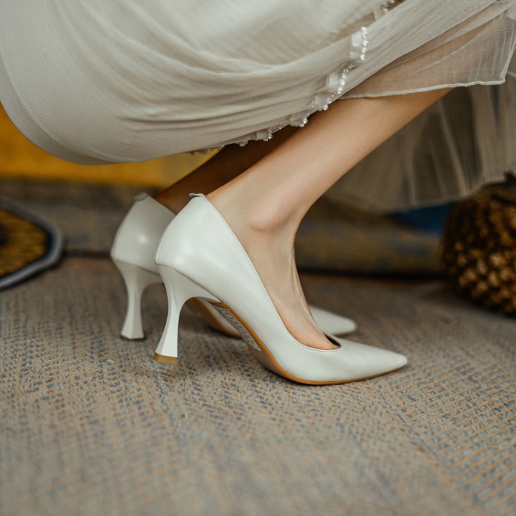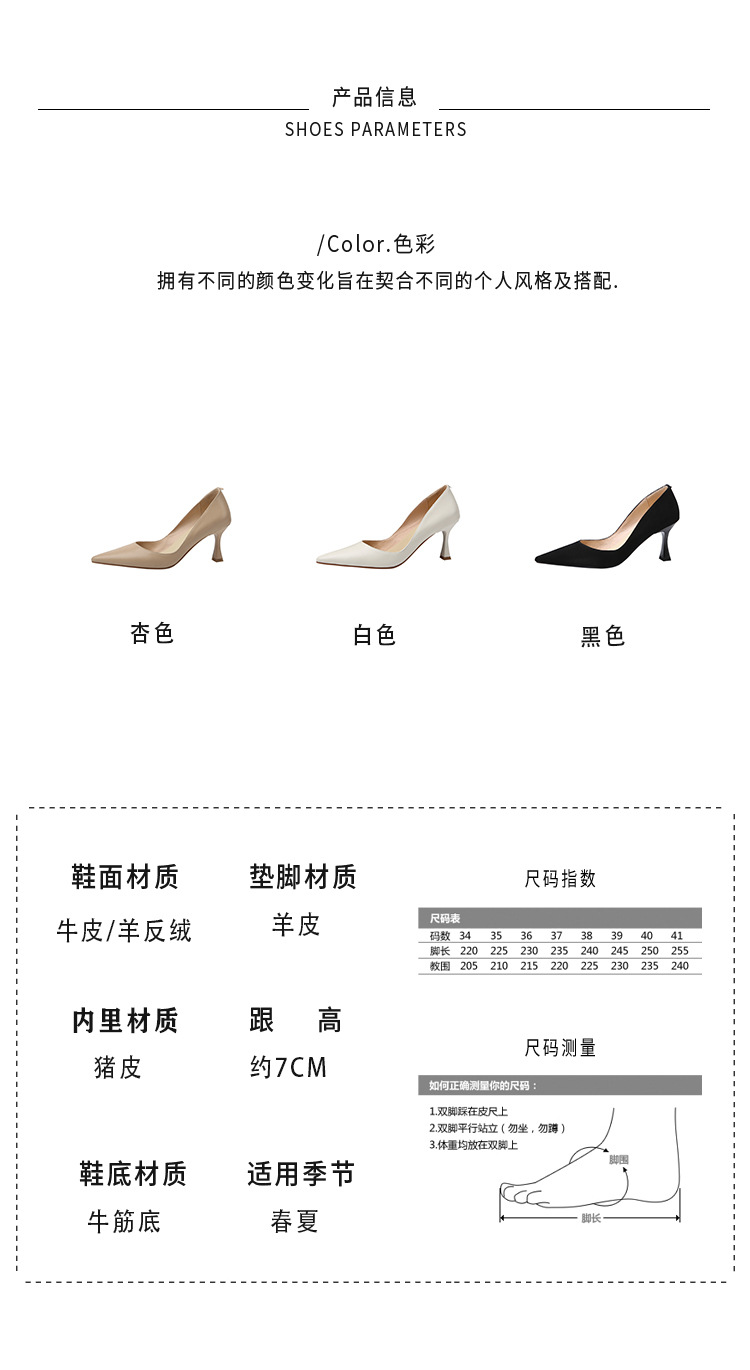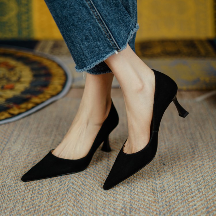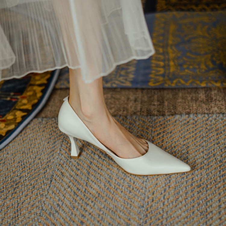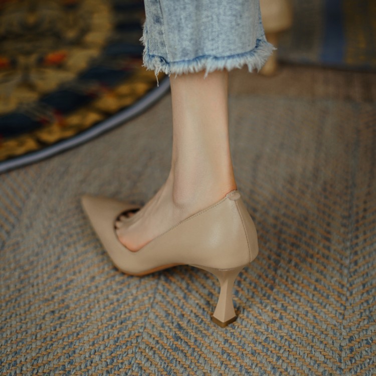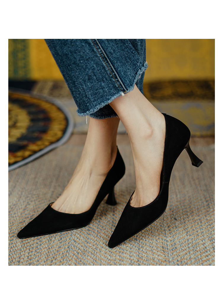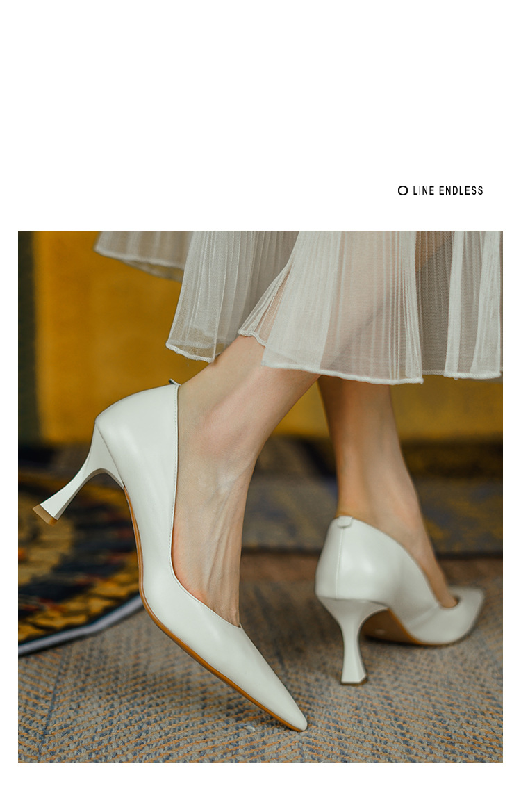 여성용 전체 가죽 신발 스틸레토 힐 뾰족한 발가락 얕은 입 신발 양가죽 한국식 뾰족한 발가락 우아한 하이힐 통근 작업 신발스토어 가기