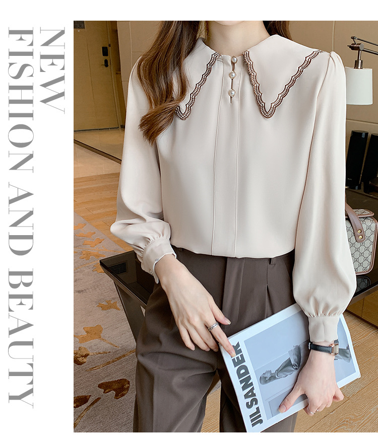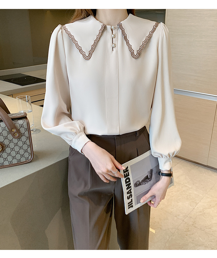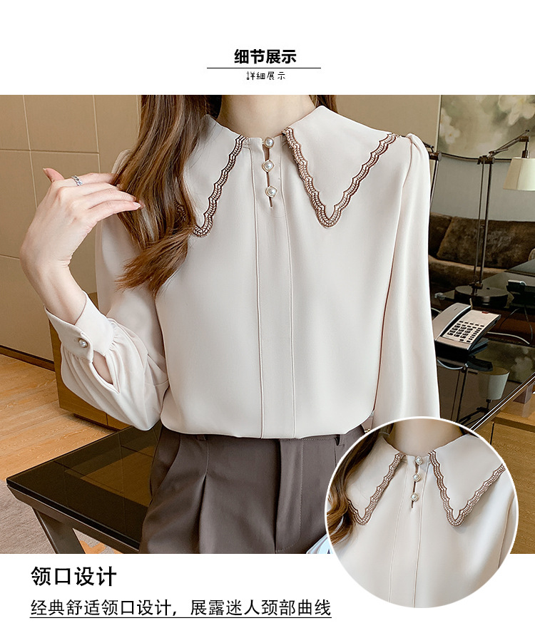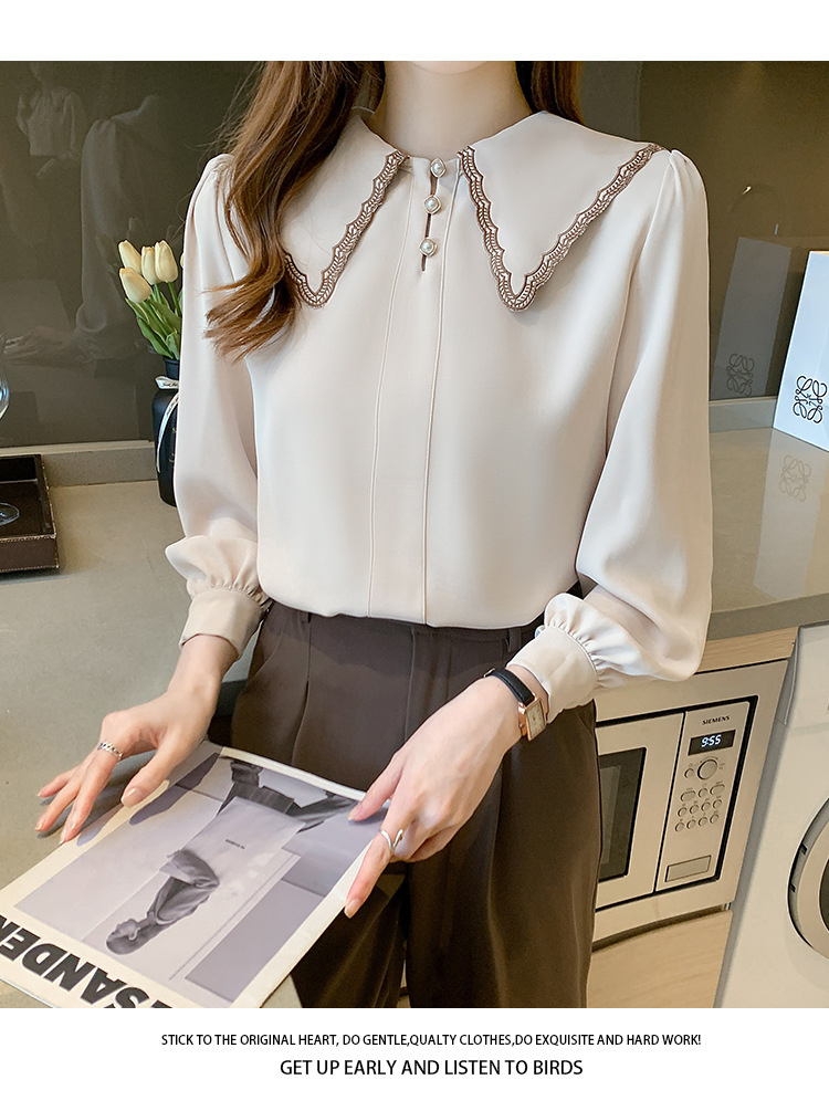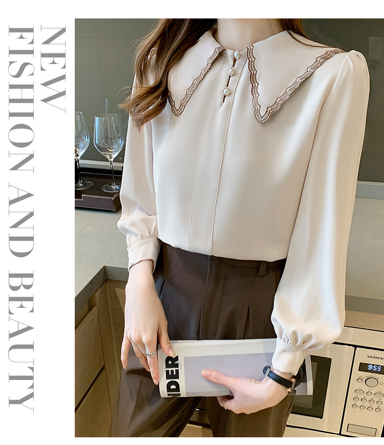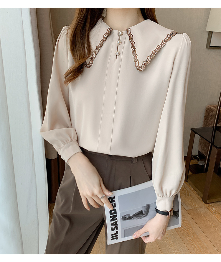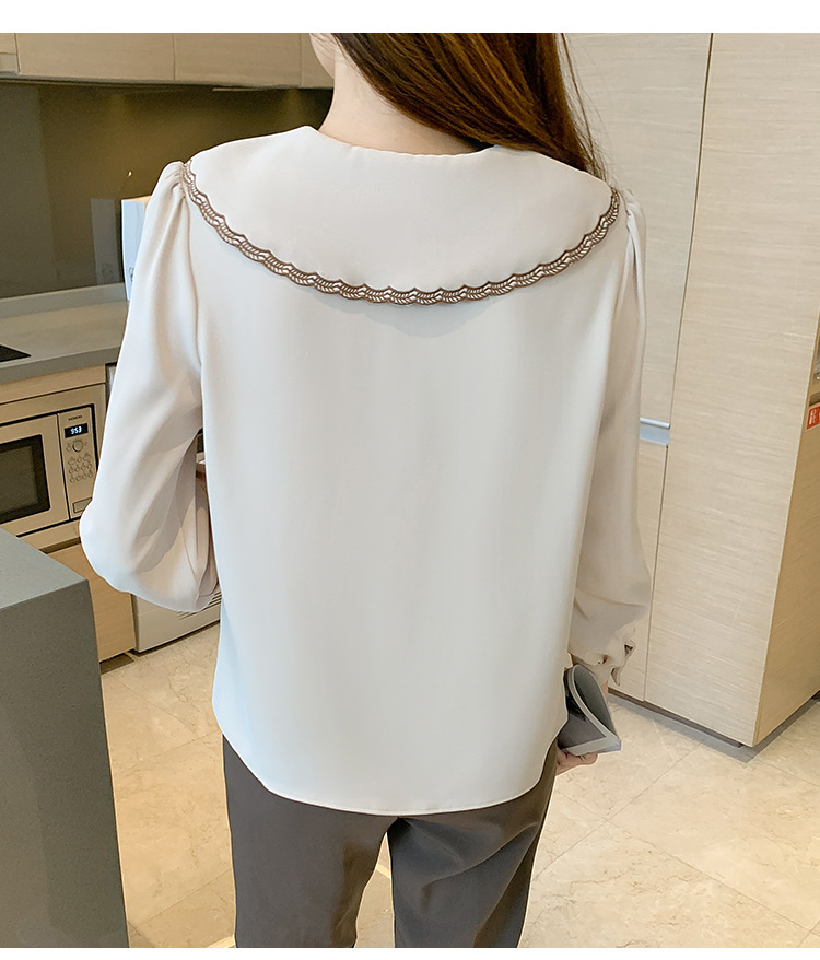 자수 셔츠 여자의 2022 가을 새로운 디자인 감각 느슨한 프랑스 복고풍 긴 소매 쉬폰 얇은 탑