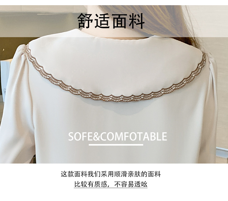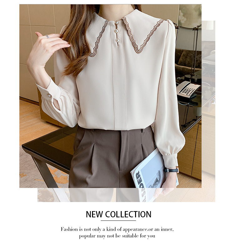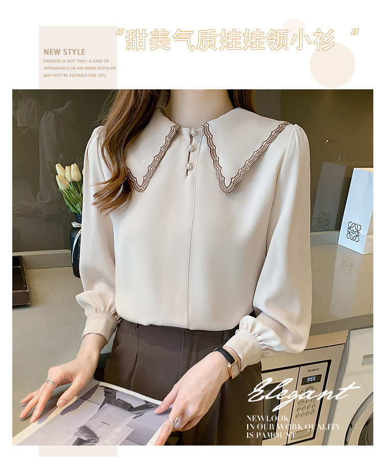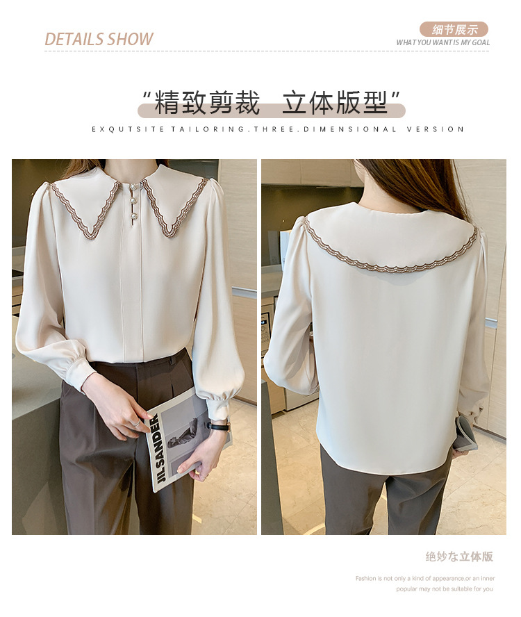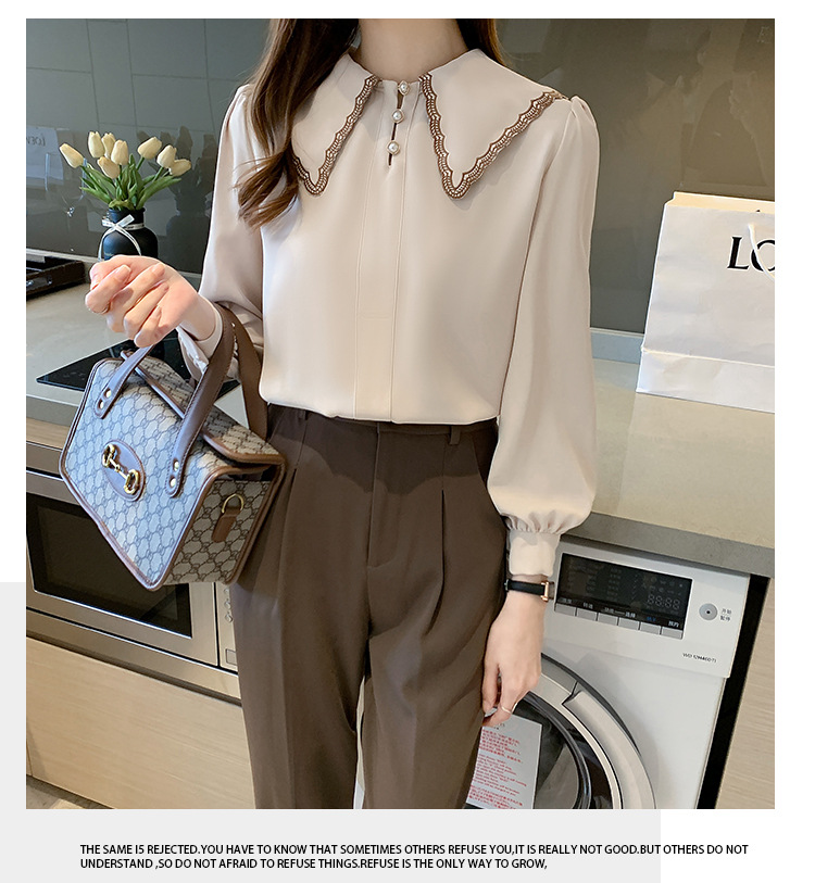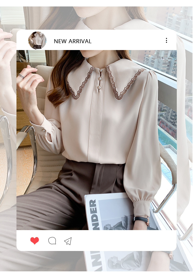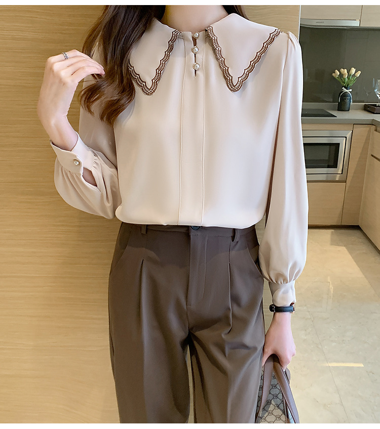 자수 셔츠 여자의 2022 가을 새로운 디자인 감각 느슨한 프랑스 복고풍 긴 소매 쉬폰 얇은 탑