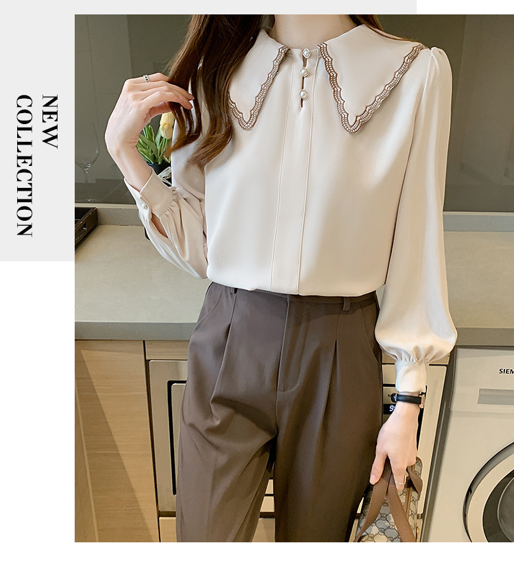 자수 셔츠 여자의 2022 가을 새로운 디자인 감각 느슨한 프랑스 복고풍 긴 소매 쉬폰 얇은 탑스토어 가기