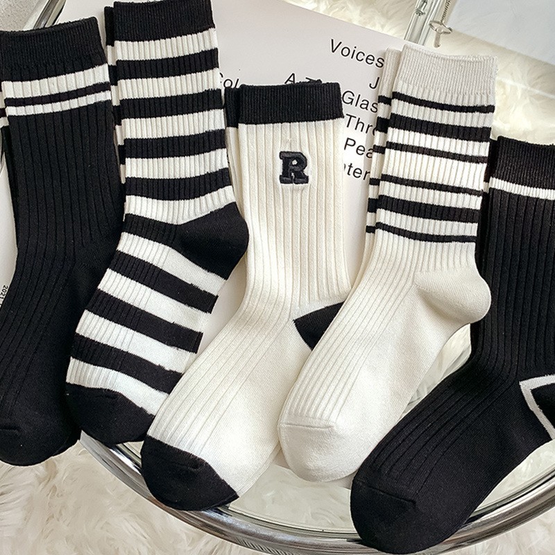 [다량과 우수한 가격] 양말 여성용 양말 유행 양말 애호가 흑백 양말 가을과 겨울 남성 하이 양말스토어 가기