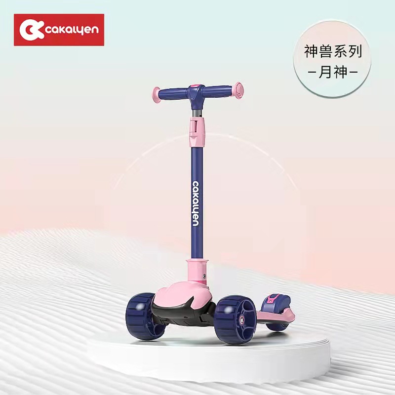 Cakalyen 2 세 소년과 소녀 아기 빛나는 스쿠터 어린이 6 세 원 버튼 접이식 한쪽 다리 스쿠터