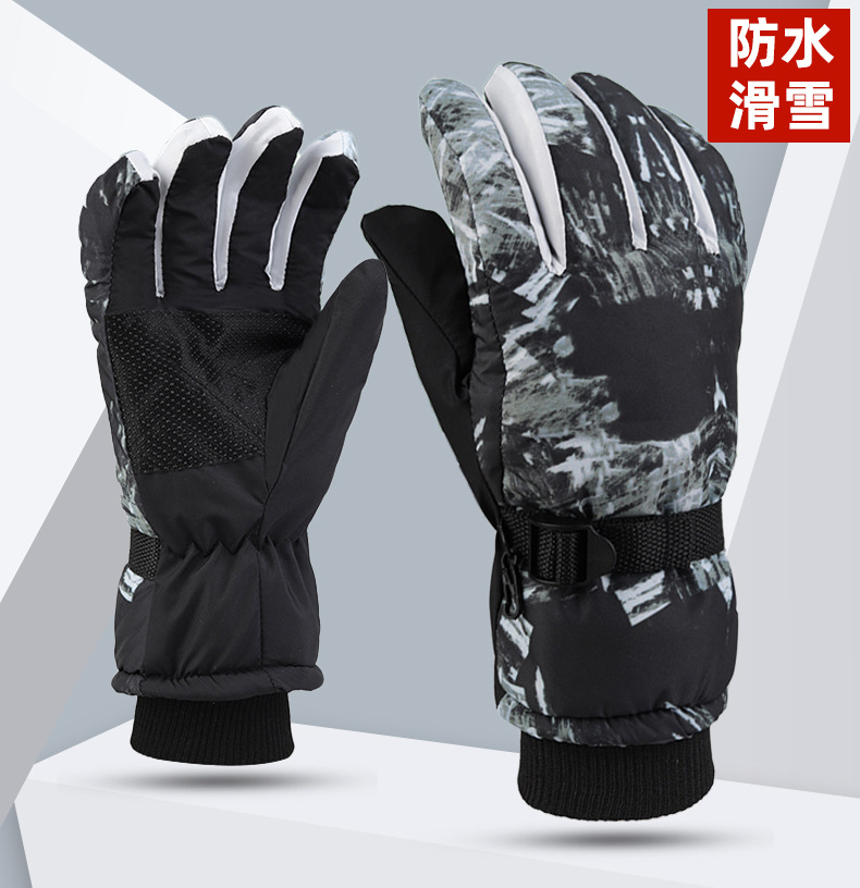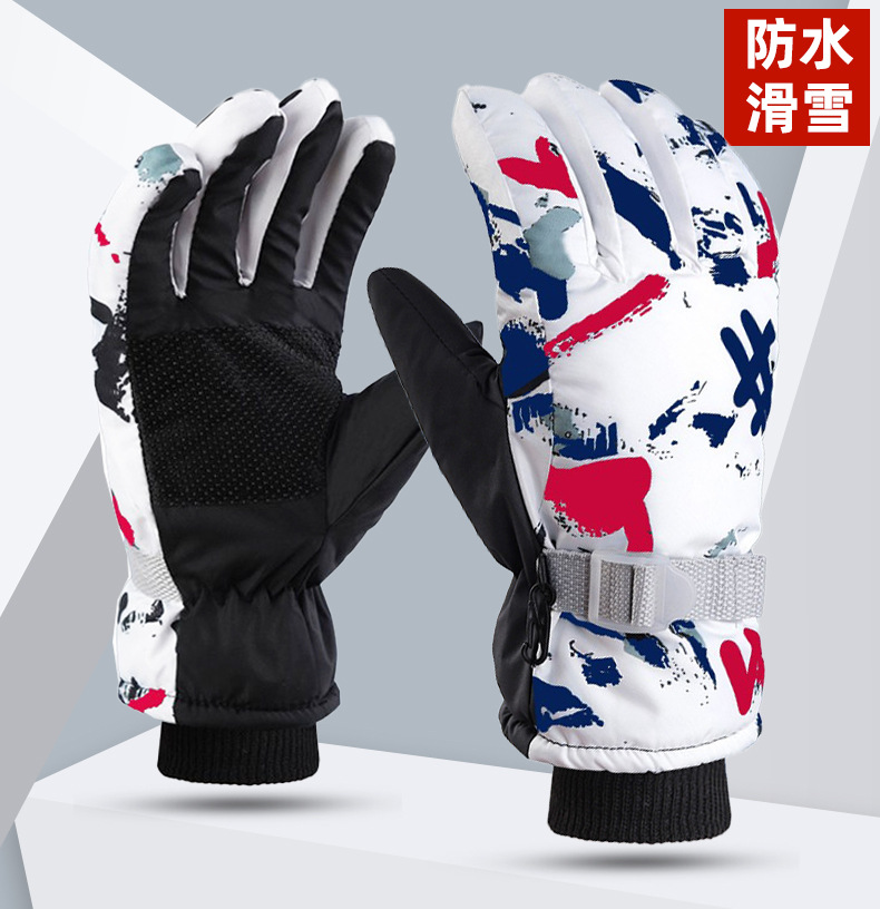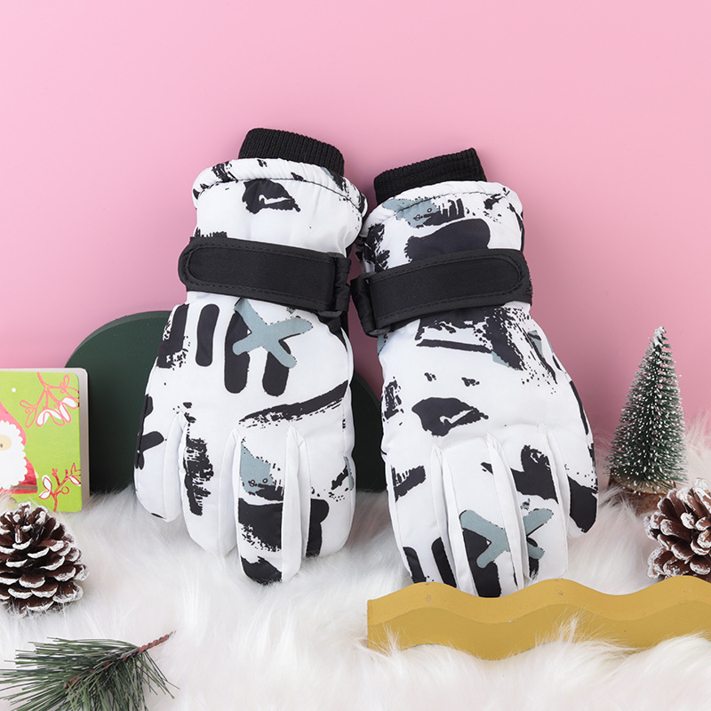 겨울 남자와 여자의 방한 기모 두꺼운 면 방수 미끄럼 방지 따뜻한 승마 야외 흰색 낙서 스키 장갑