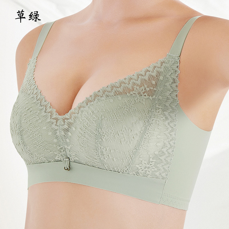 Manzi Meidie 8802 알몸 무테 브라 미디엄 두꺼운 B-컵 레이스 속옷 사이드 개더 뼈없는 브라스토어 가기