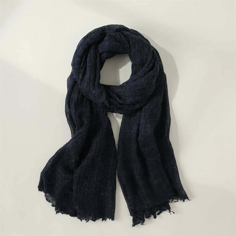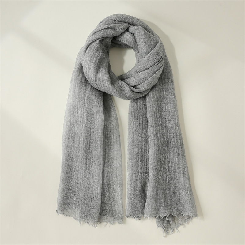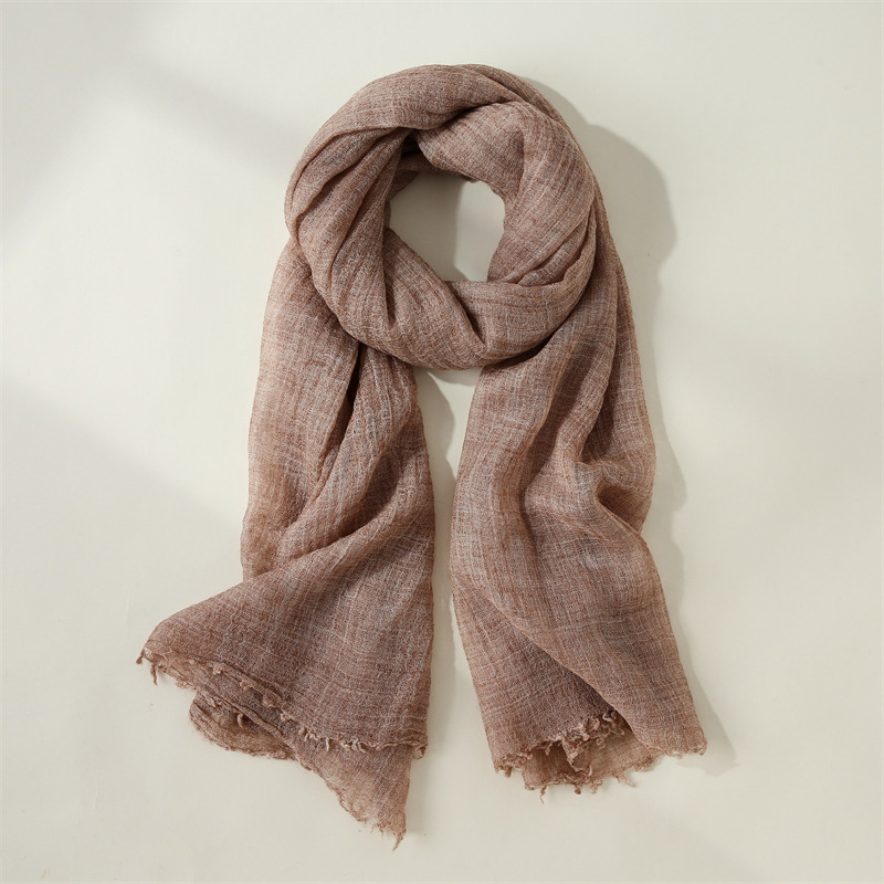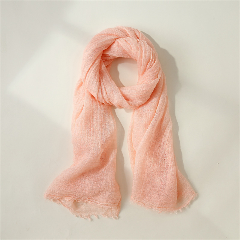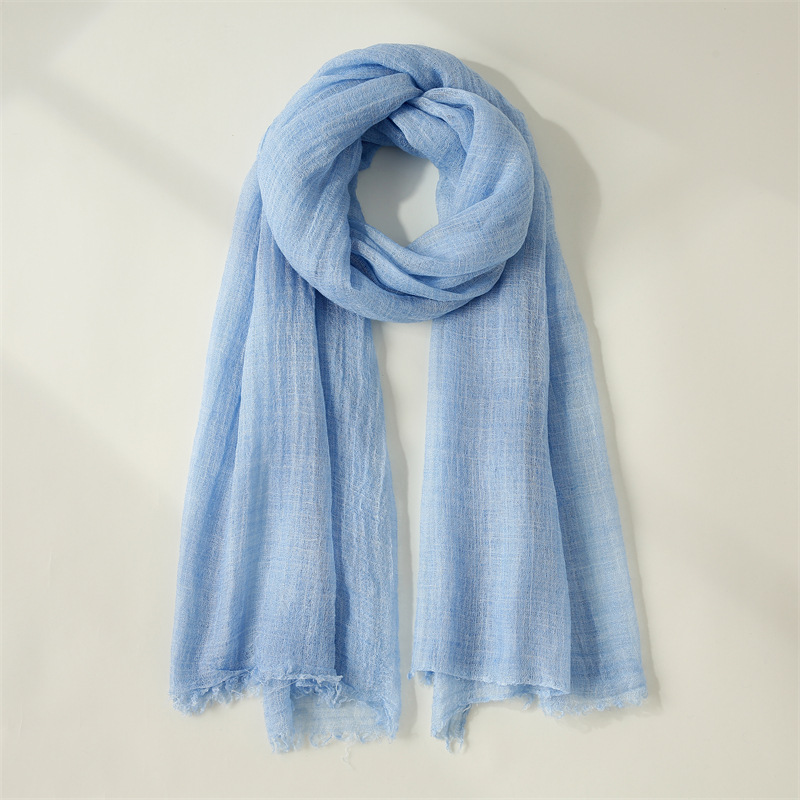 纯色棉麻围巾女文艺防晒丝巾小围脖沙滩长条丝巾批发日系纱巾新款