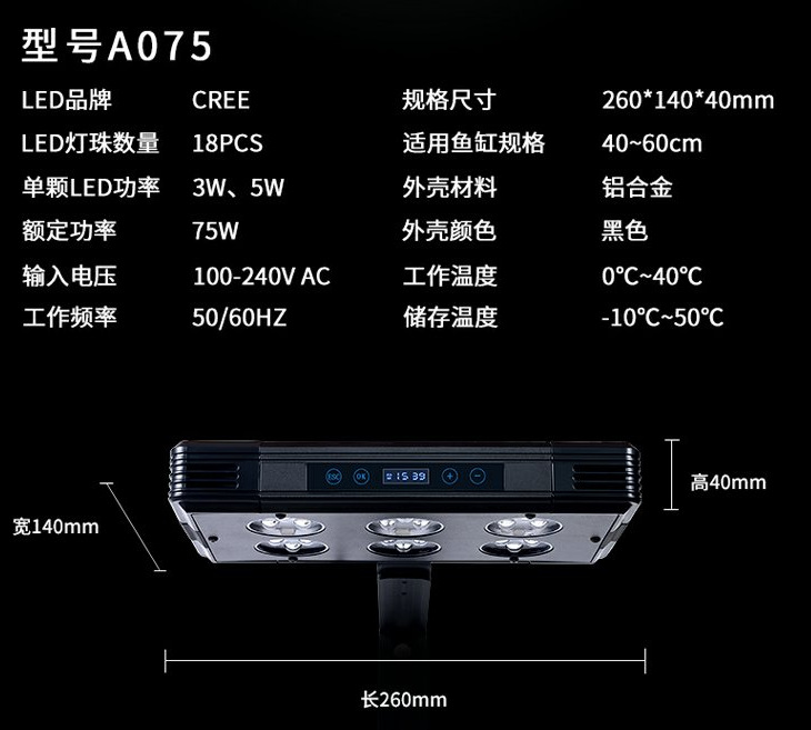 가코 크라운 Q2-B A030 A052 A075LED 풀 스펙트럼 바다 탱크 라이트 산호 수족관 빛 일출 일몰