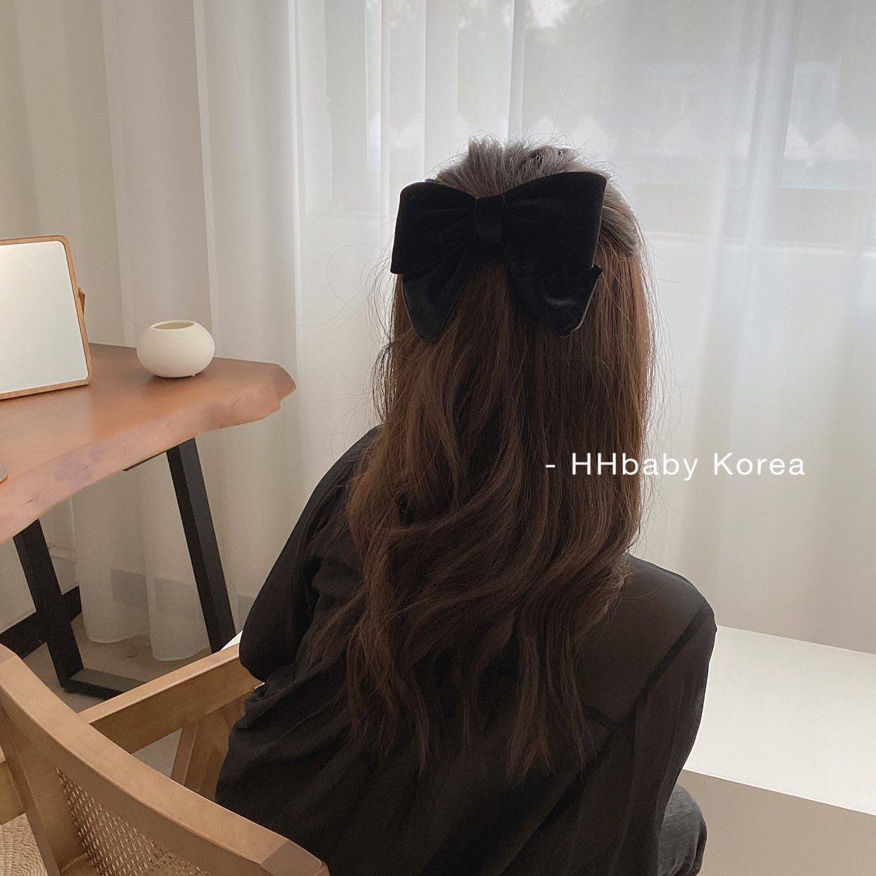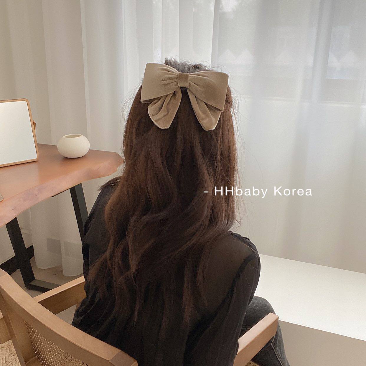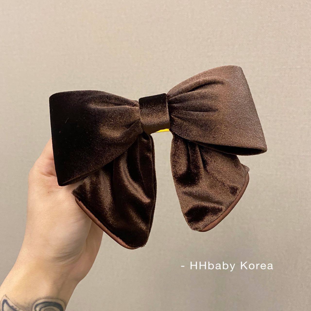 [HHBABY] 한국 하이 퀄리티 벨벳 패브릭 스탠드 활 스프링 클립 머리핀 포니테일 클립 헤어 액세서리 도매
