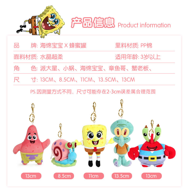 정품 스폰지 밥 봉제 인형 장난감 패트릭 스타 인형 게 보스 Squidward 인형 작은 달팽이 베개스토어 가기