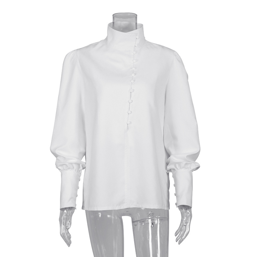 2023 봄 새로운 여성의 유럽과 미국의 긴 소매 중국 스탠드 칼라 기질 통근 캐주얼 패션 프로 화이트 셔츠