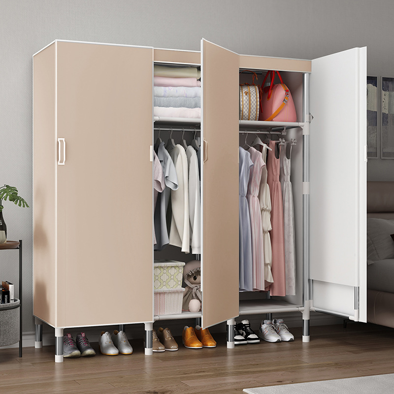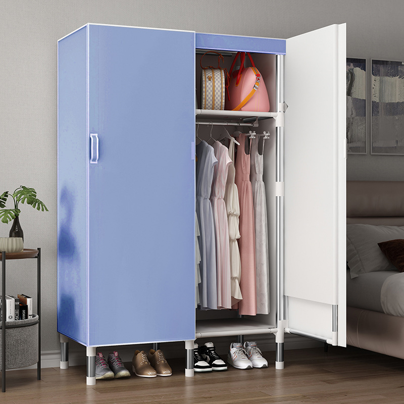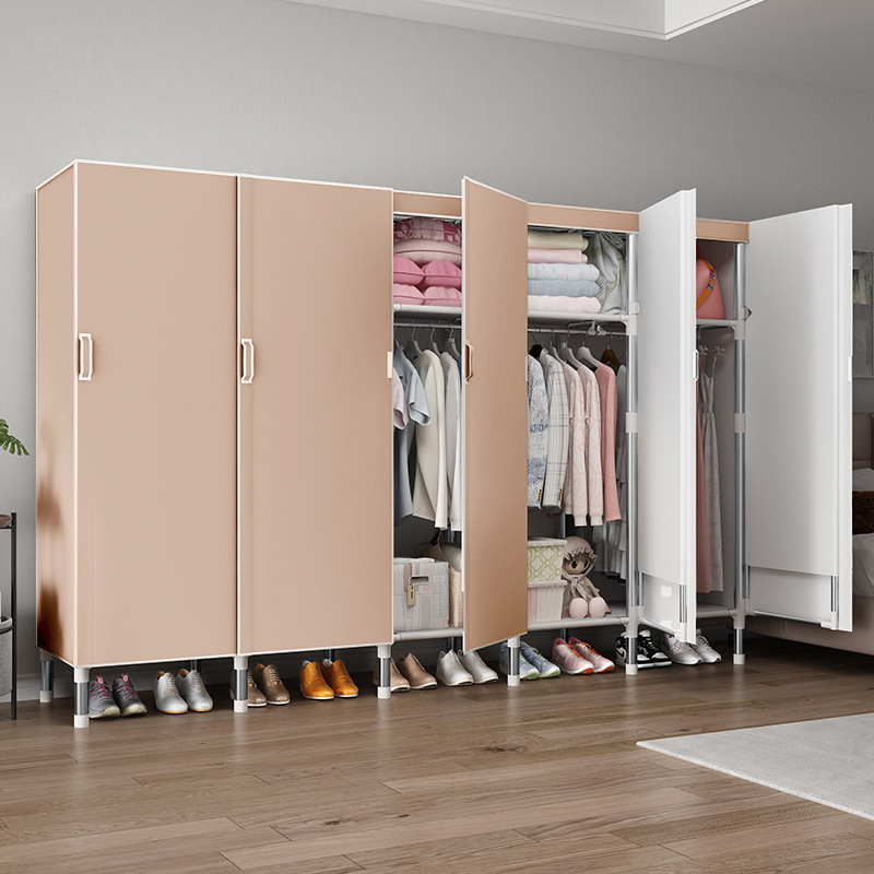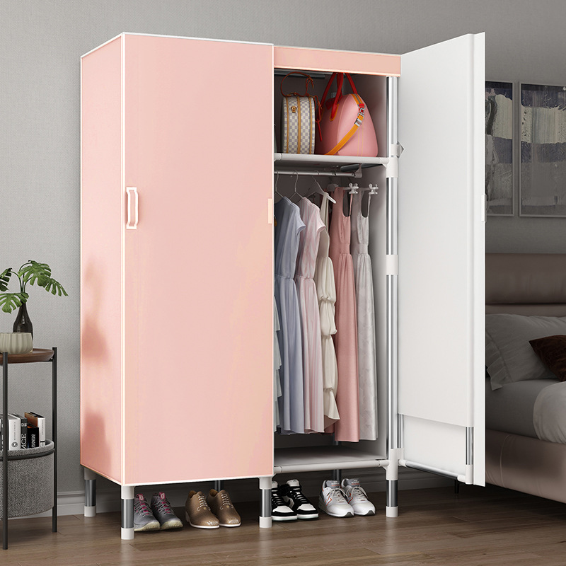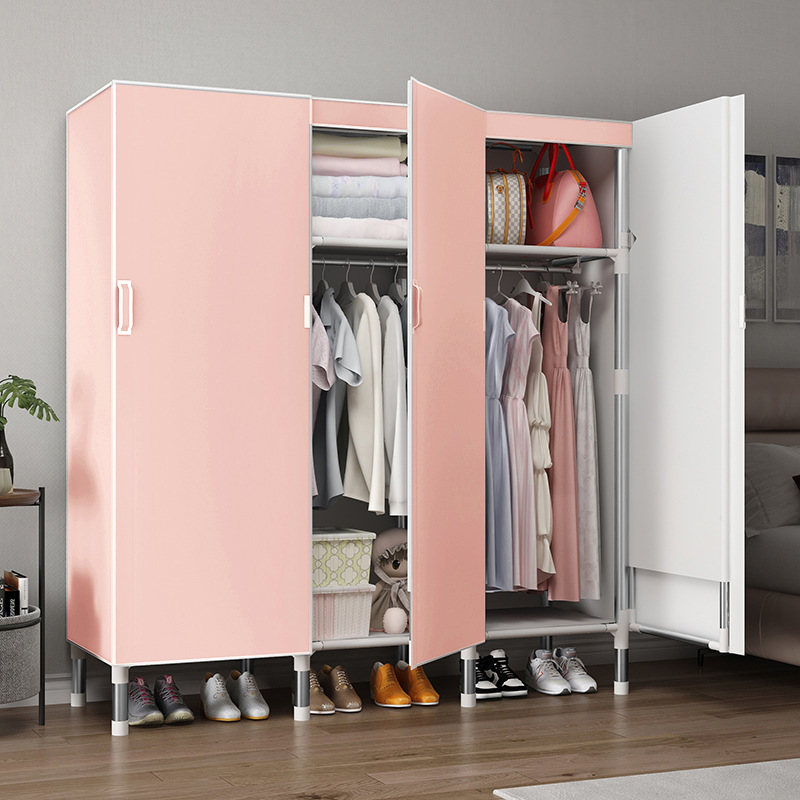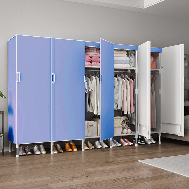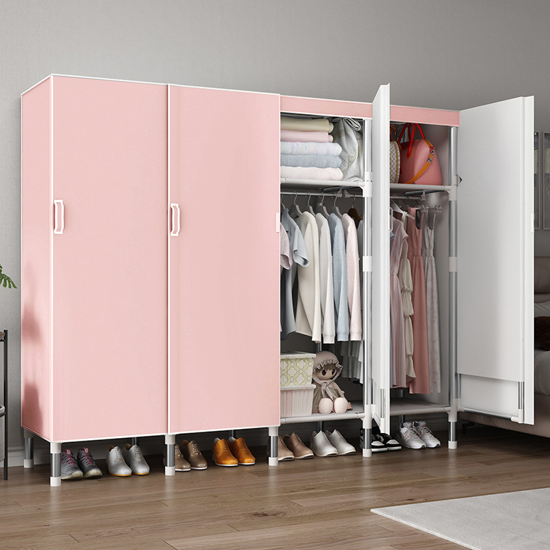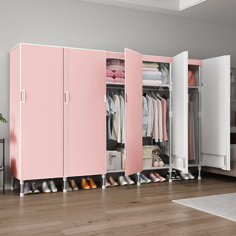 오픈 도어 옷감 옷장 강관 두꺼운 강화 된 전체 강철 프레임 패브릭 임대실 침실 가정용 간단한 천 캐비닛스토어 가기