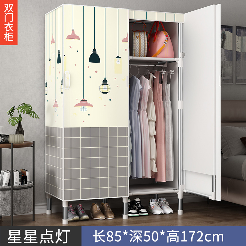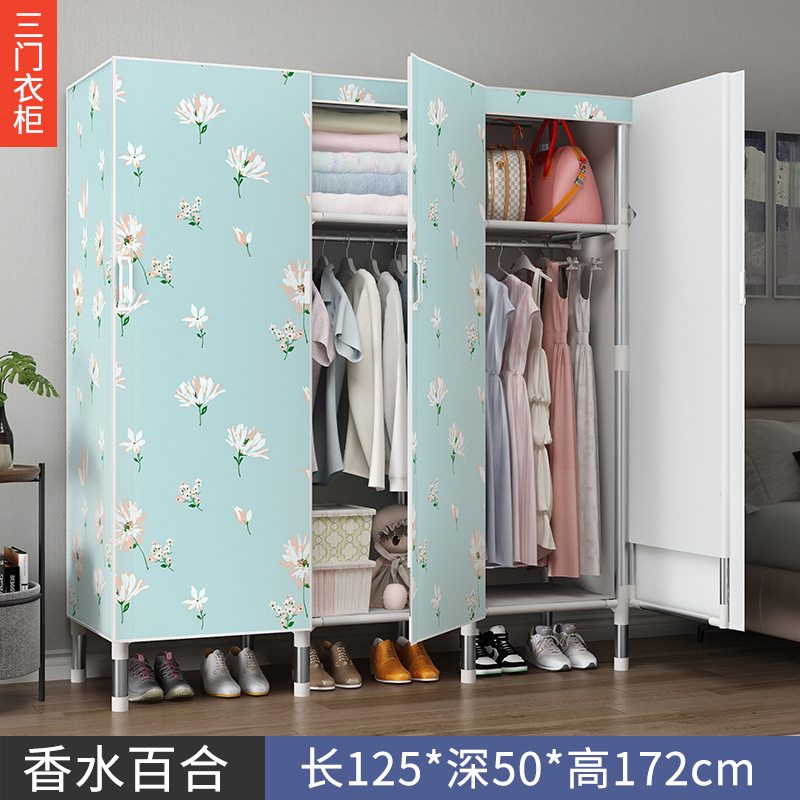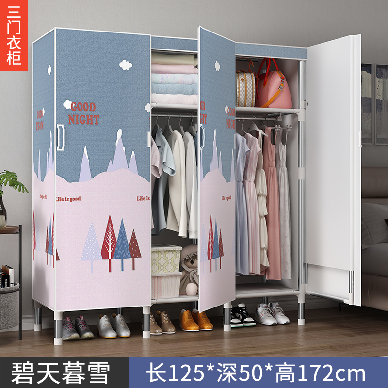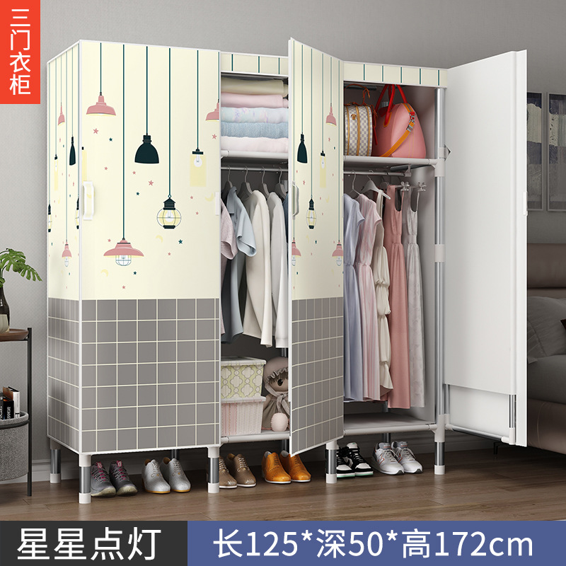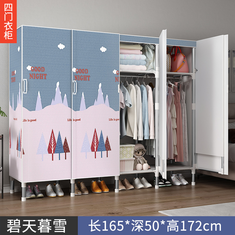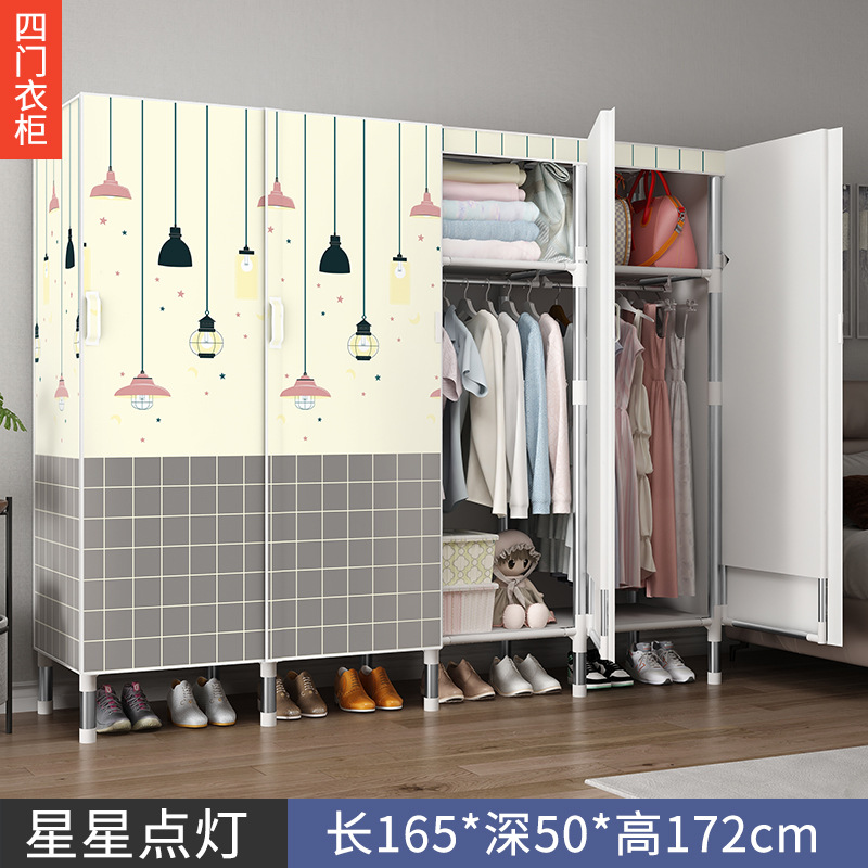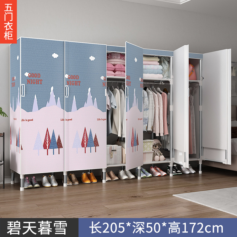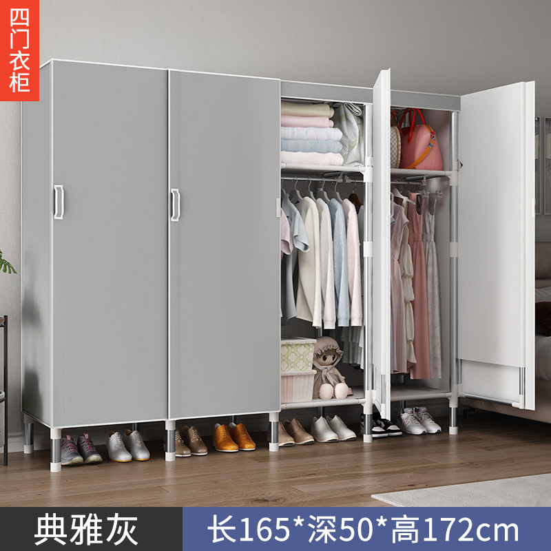 오픈 도어 옷감 옷장 강관 두꺼운 강화 된 전체 강철 프레임 패브릭 임대실 침실 가정용 간단한 천 캐비닛스토어 가기