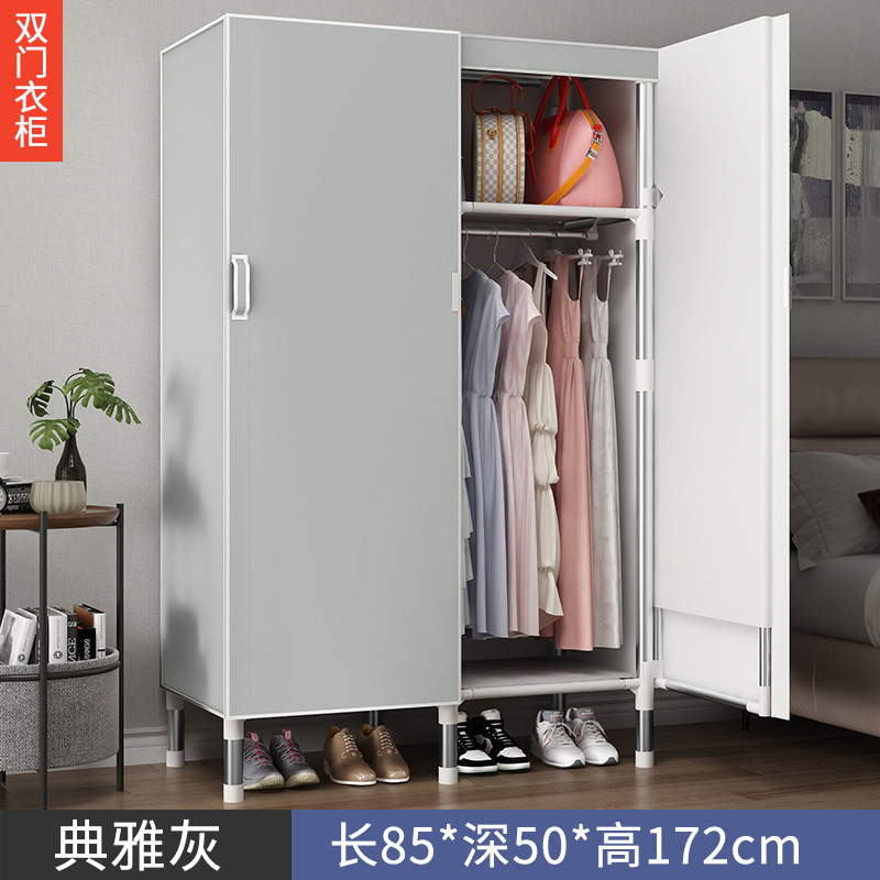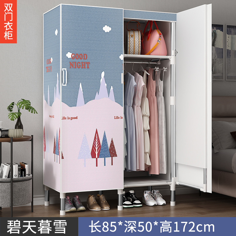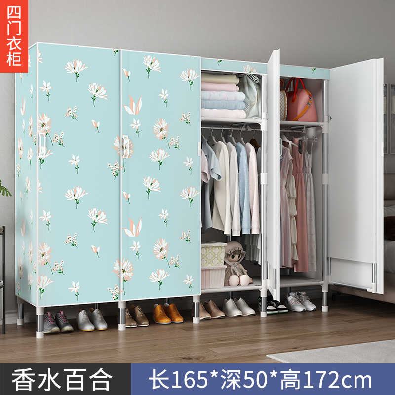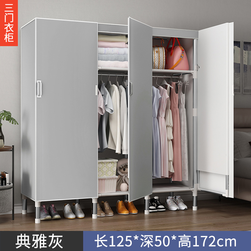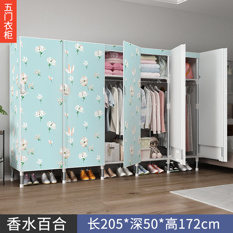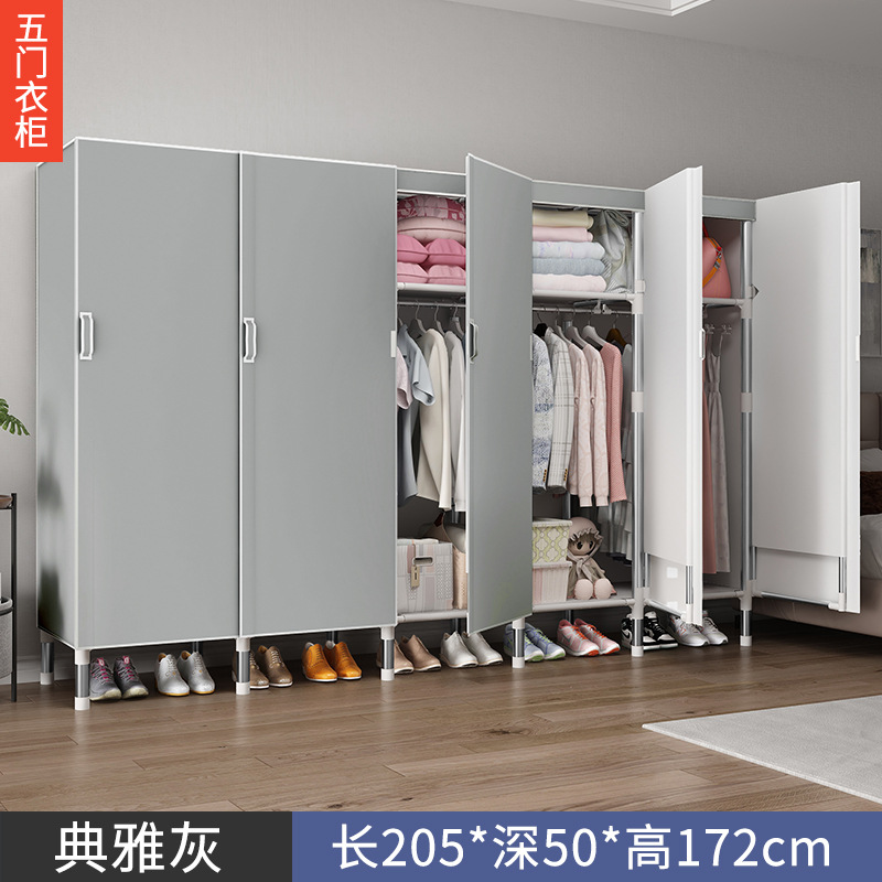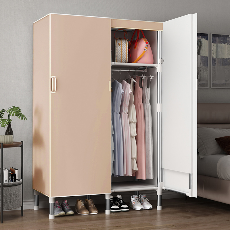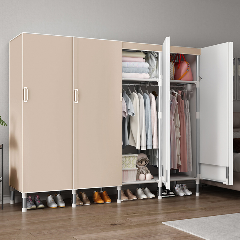 오픈 도어 옷감 옷장 강관 두꺼운 강화 된 전체 강철 프레임 패브릭 임대실 침실 가정용 간단한 천 캐비닛