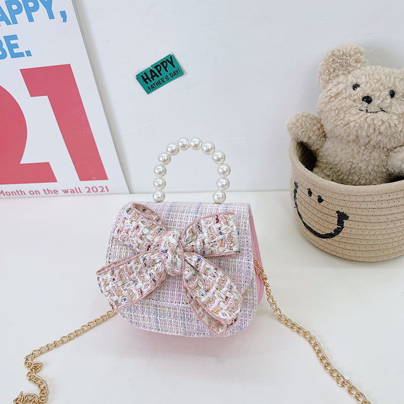 도매 아동 가방 2023 새로운 작은 향기 활 진주 손 가방 외국 스타일 소녀 공주 체인 메신저 가방스토어 가기