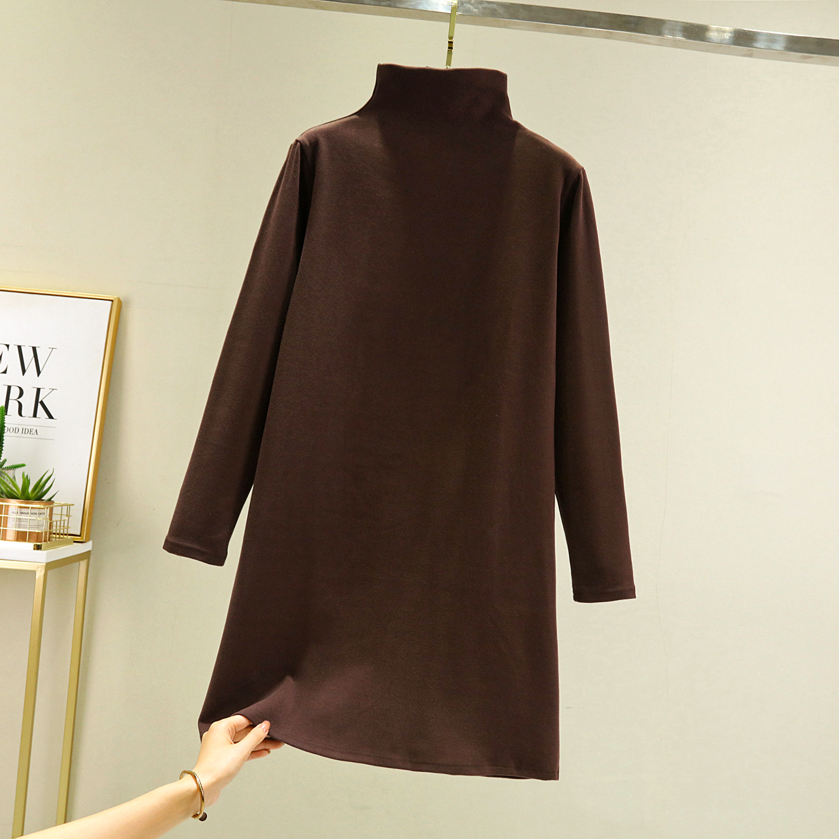 가을과 겨울 새로운 벨벳 하프 하이 칼라 긴 소매 원피스 한국 느슨한 플러스 사이즈 A-라인 스커트 원피스스토어 가기