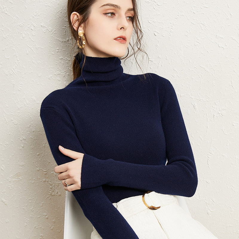 크로스 보더 새로운 파일 칼라 베이스 셔츠 여성용 가을과 겨울 인테리어 슬림핏 긴팔 니트웨어 따뜻한 꽉 터틀넥 스웨터