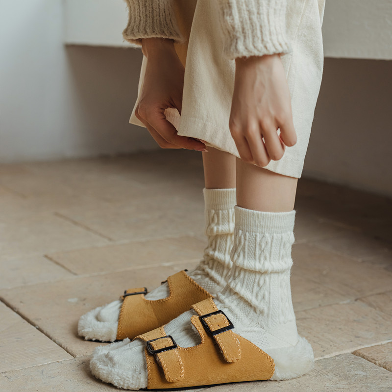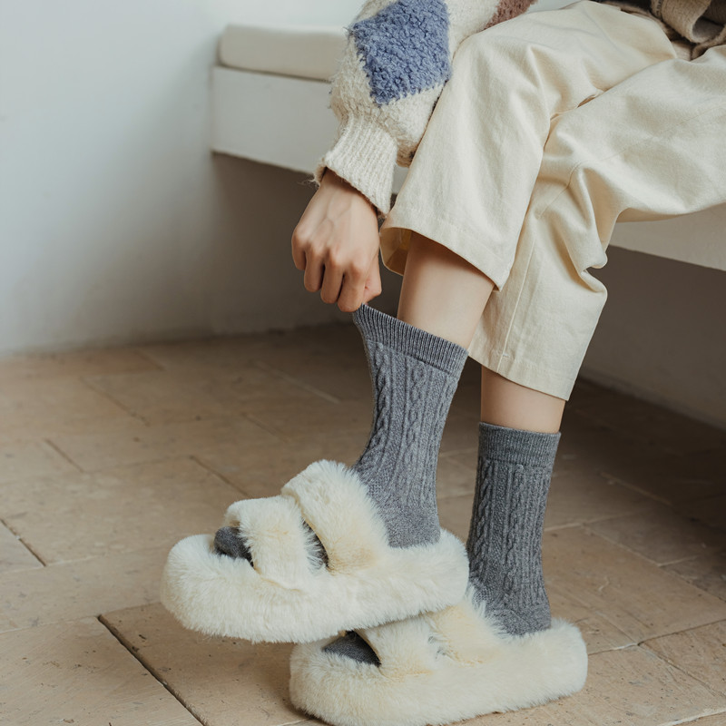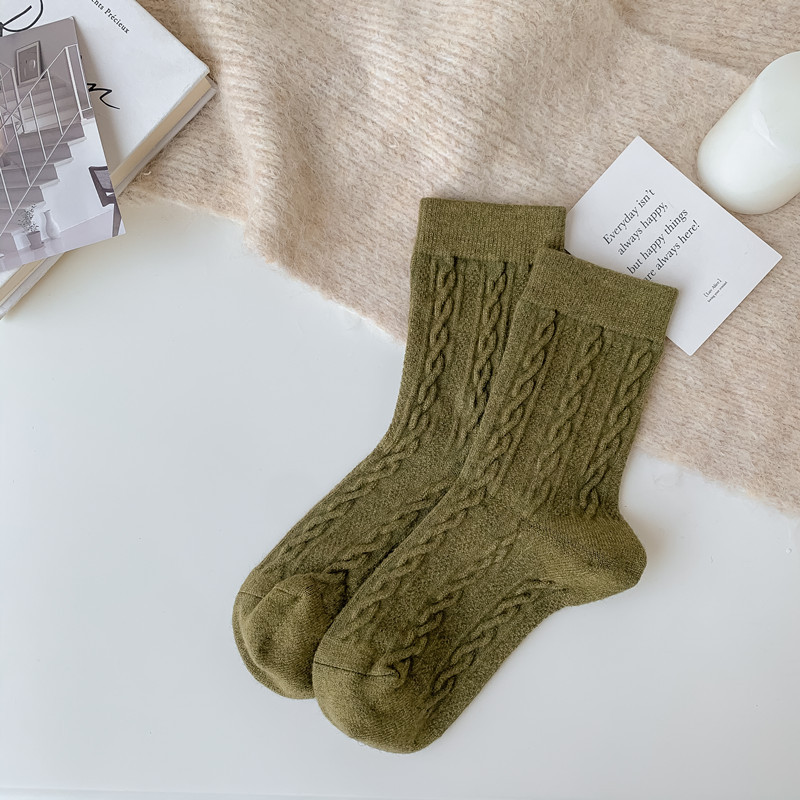 여성용 양말 일본식 니트 트위스트 캐시미어 여성용 종아리 중간 양말 트렌디하고 다재다능한 복고풍 따뜻한 양말