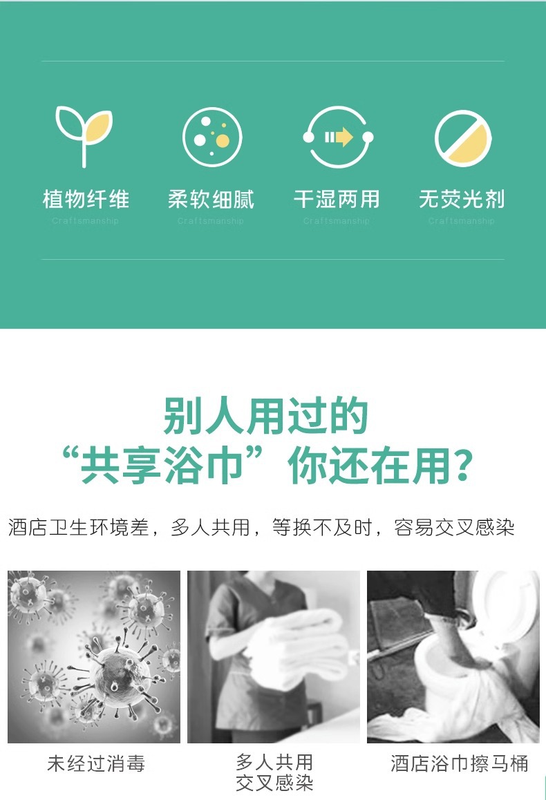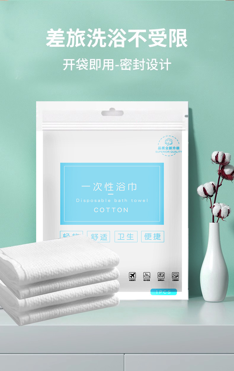 일회용 목욕 수건, 개별 포장된 압축 수건, 여행 용품, 두껍고 확대된 순면 일회용 제품스토어 가기