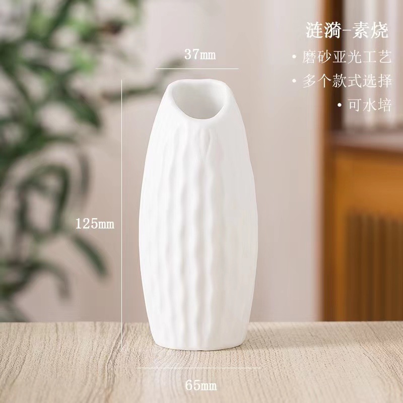 일반 구운 흰색 세라믹 꽃병 현대 간단한 말린 꽃 꽃꽂이 도매 창조적 인 가정 장식 공예품 장식품스토어 가기