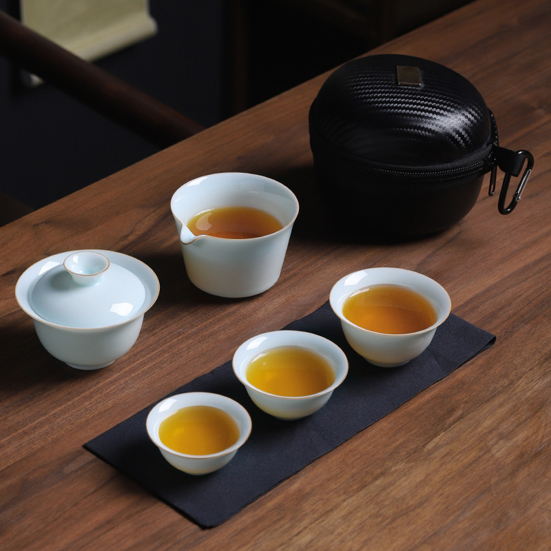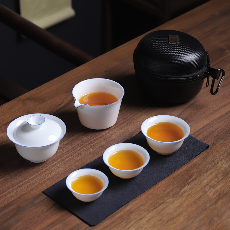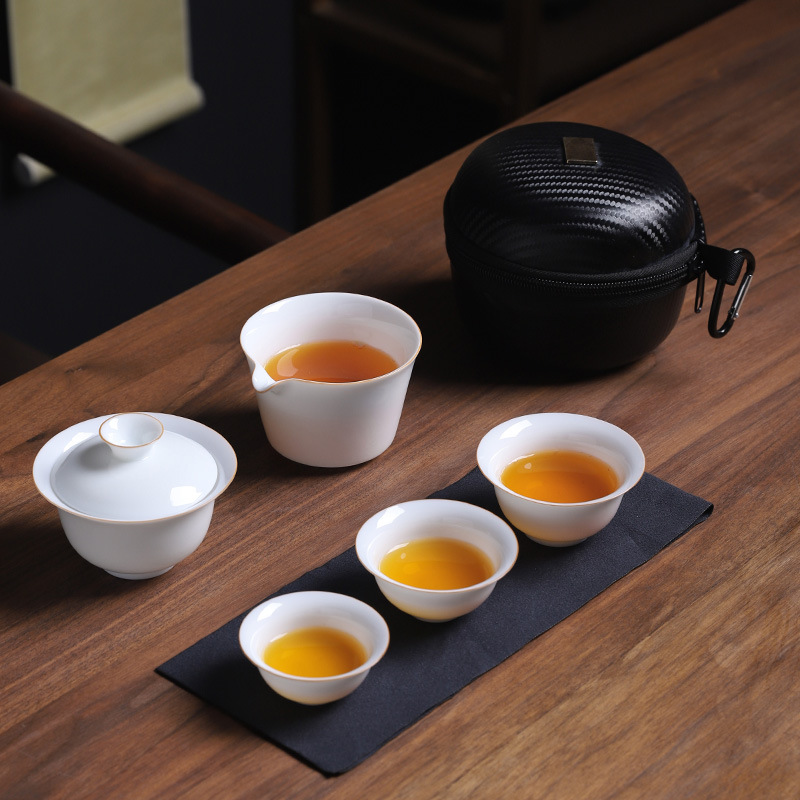 화이트 도자기 여행 차 세트 세트 휴대용 소형 세트 휴대용 야외 가방 주전자 찻잔 컵 빠른 손님 컵 세 컵의 냄비