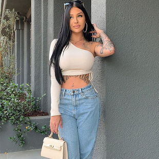 2025 봄 새로운 국경 여성 의류 아마존 유럽과 미국의 섹시한 바닥 코튼 탑 여성용 늑골이있는 긴팔 점프 슈트스토어 가기
